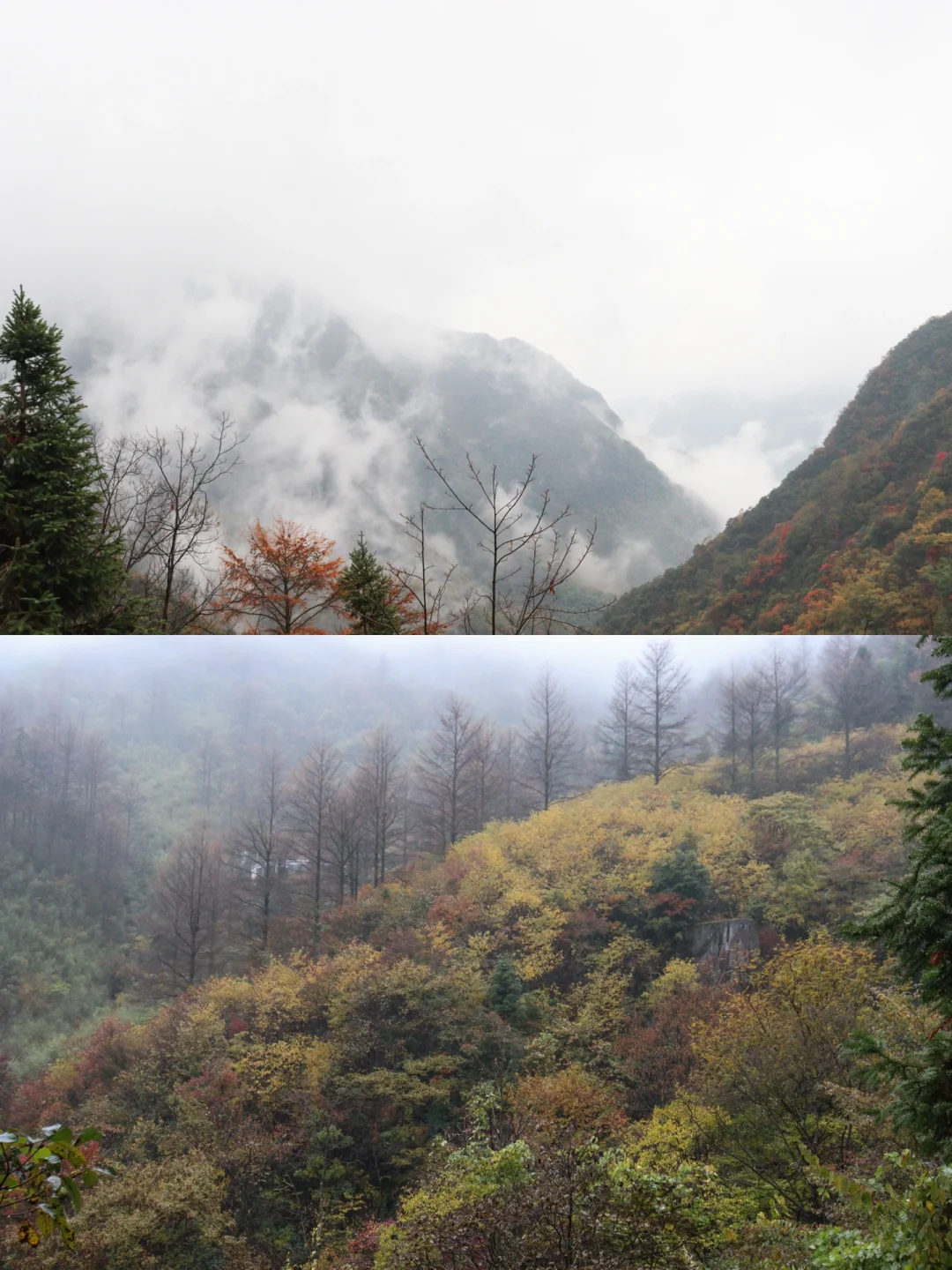🌈特意在周末前,赶赴秋末的最后一场约,细雨绵绵,浓雾弥漫,我们欣赏着金钱松另一番独特的风景。