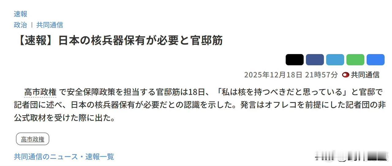 高市早苗团伙高层向外界传出消息:日本应该拥有核武器 好了,日本向拥核迈出去一步,虽然实质上发生不了什么变化,但是作为二战战败国,说出拥核言论,已经实属大逆不道,意图谋反了 现在美国想让日本当狗咬我们,所以肯定不会管 俄罗斯自己都抽不开身,顶多打几句官腔,抗议谴责一下 真正能让日本认清自己战败国地位,能让日本求锤得锤的,只有中国,也只能靠我们自己