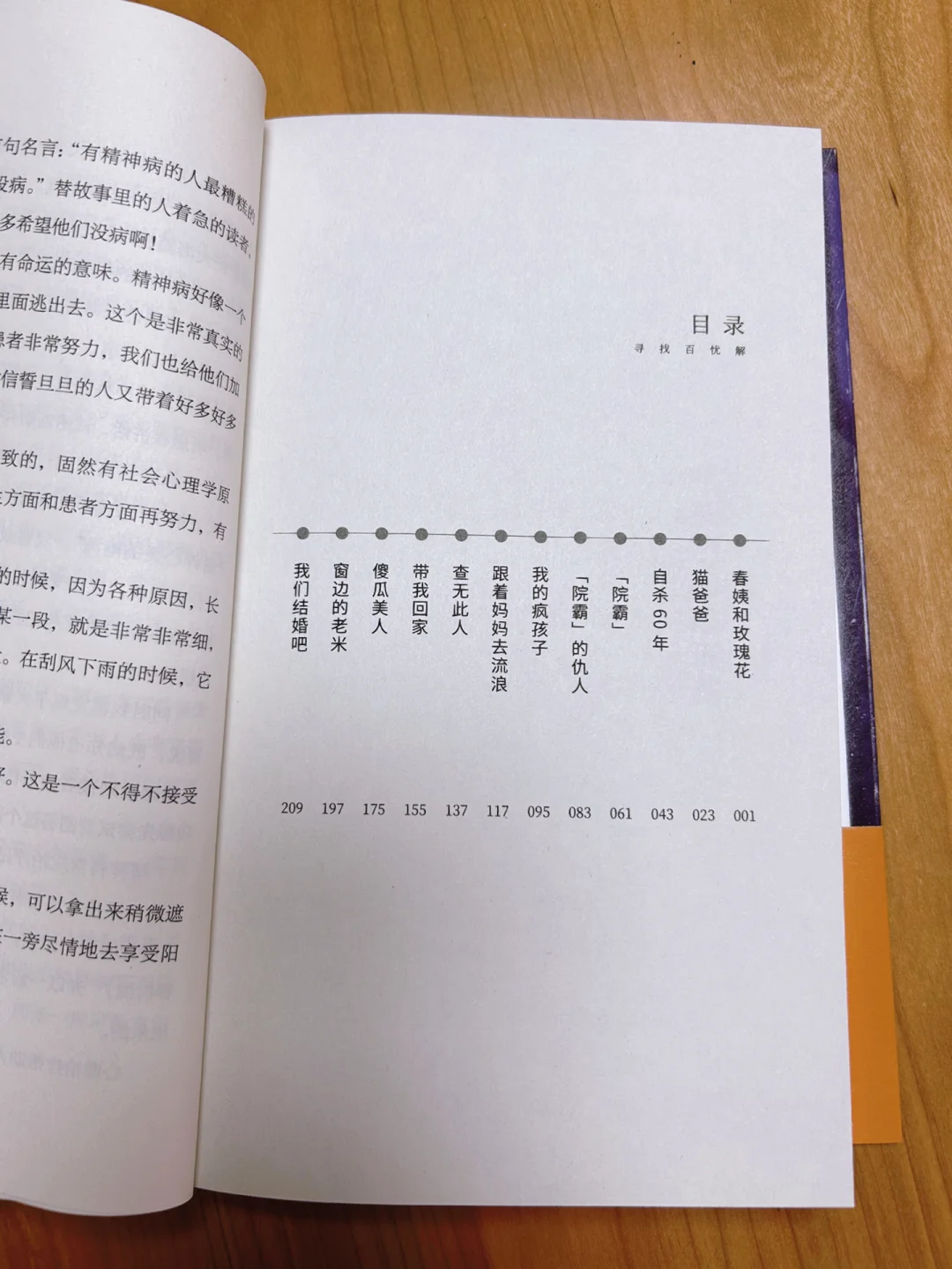 本书是精神科医生陈百忧的真实诊疗手记,记录了12位精神病患者人生中最癫狂也最暗淡的一面:持续60年的自sha 计划里,藏着一个家最深情的秘密;连医生都害怕的病症,却被精神病室友治好了;喜欢捉迷藏的女患者嫁给了警察,藏在异国都能被带回家......他们聚在这个被层层铁门封si 的狭小空间里,看似在接受治疗,实则在修复自己支离破碎的人生。