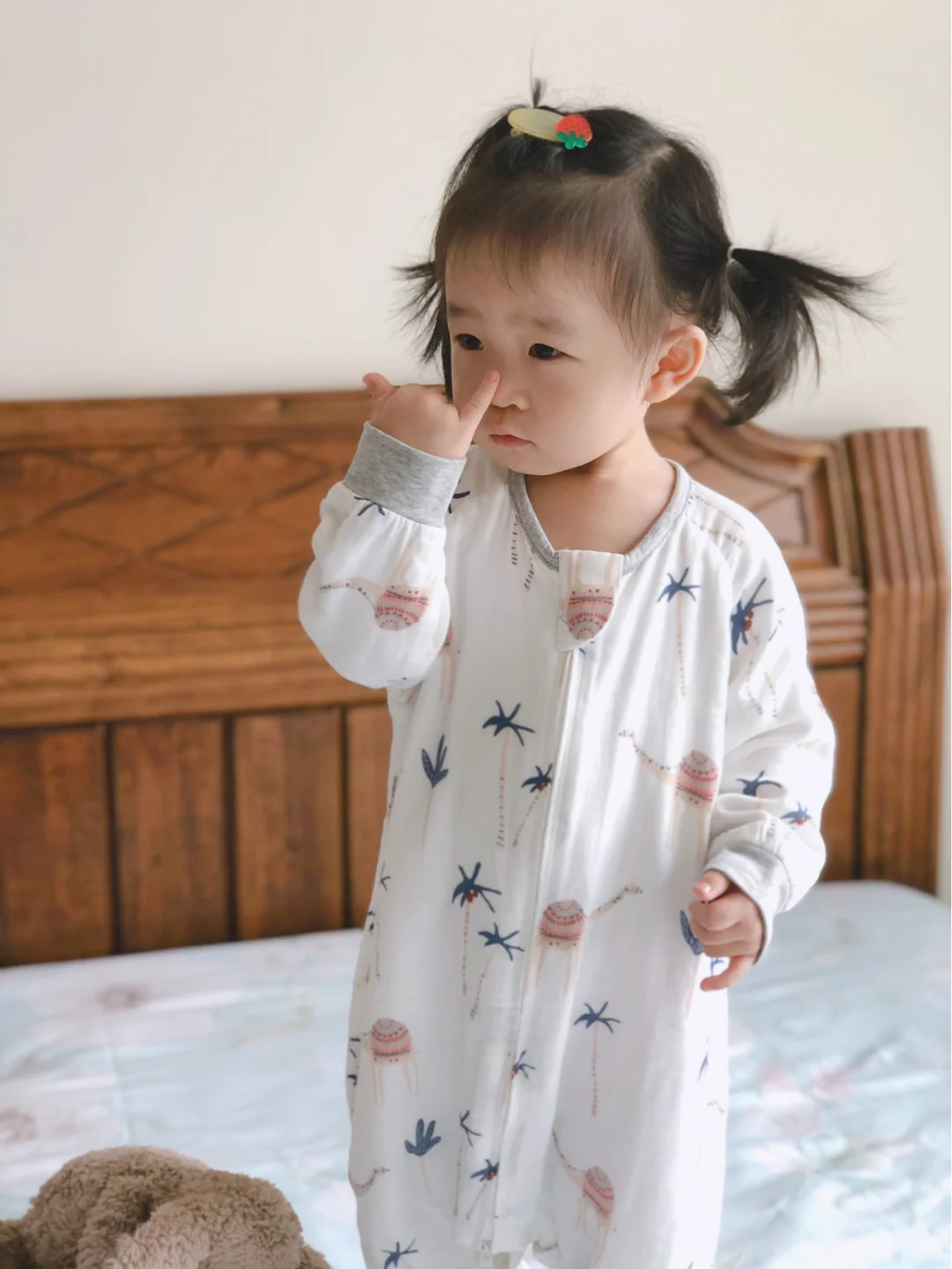 ❗️睡袋一定要选柔软,透气性好,下摆宽大舒适,可方便宝宝翻身。我是最近给伊伊丫丫入了嫚熙宝宝睡袋,竹棉长袖夏款,适合室温20~35度。 双向拉链方便自己穿脱,竹棉夏季穿很透气,玩耍不会闷热。一般在家的时候,给她们穿这个就行了。☀️每个宝宝都有自己的生存发育规律,睡眠也是一样,我们大人需要做的就是正确的引导,就好啦[赞R]