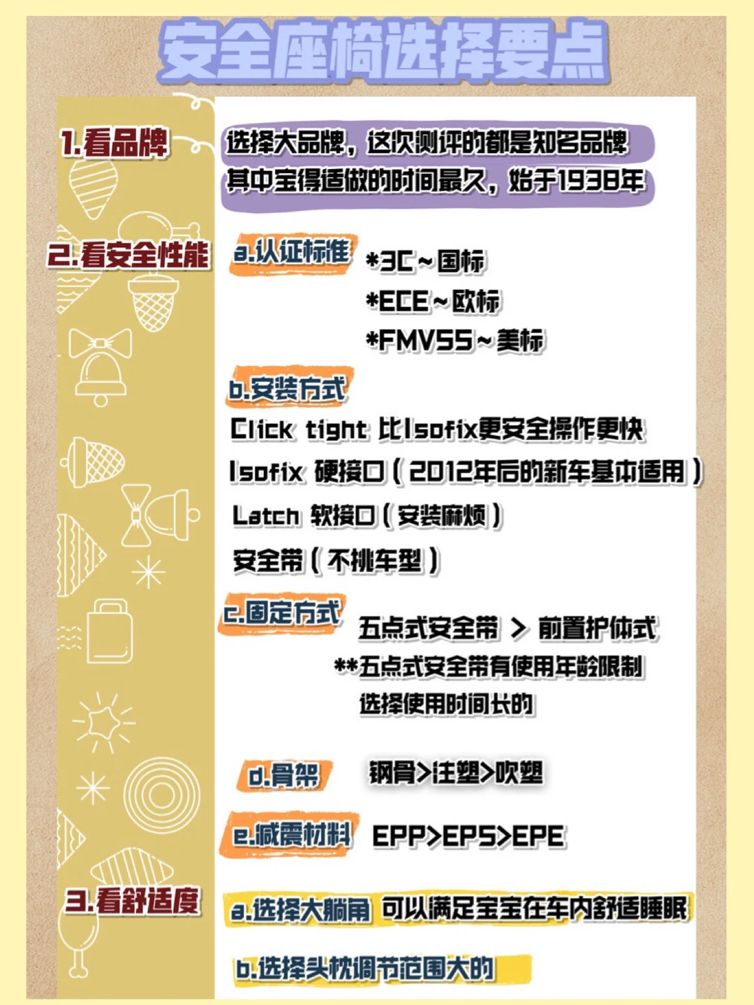 安全座椅已经是每个有宝宝家庭的必须品了,在挑选上也是很有学问的,主要从以下几个方面来选择