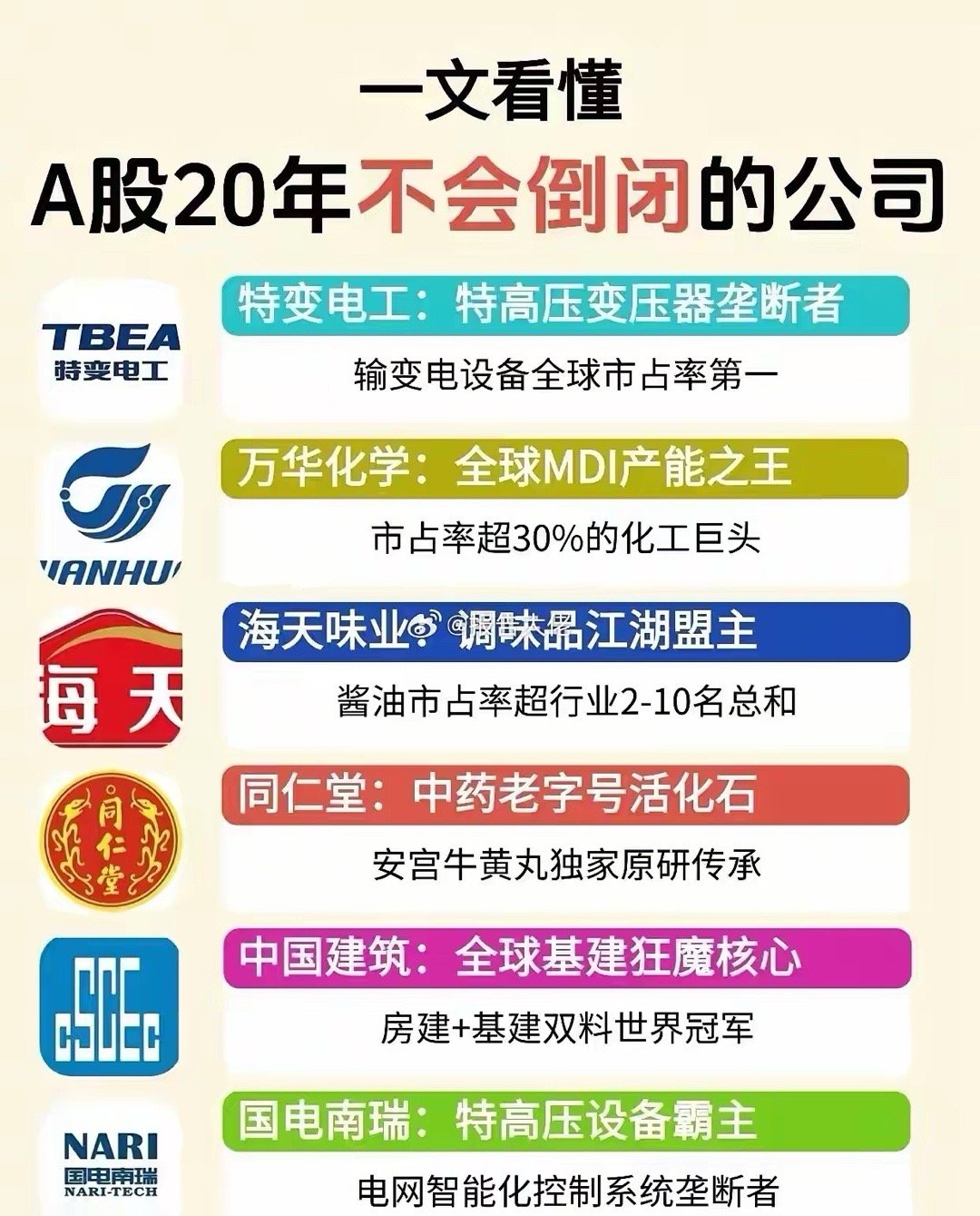 A股未来20年大概率不会倒闭的公司!