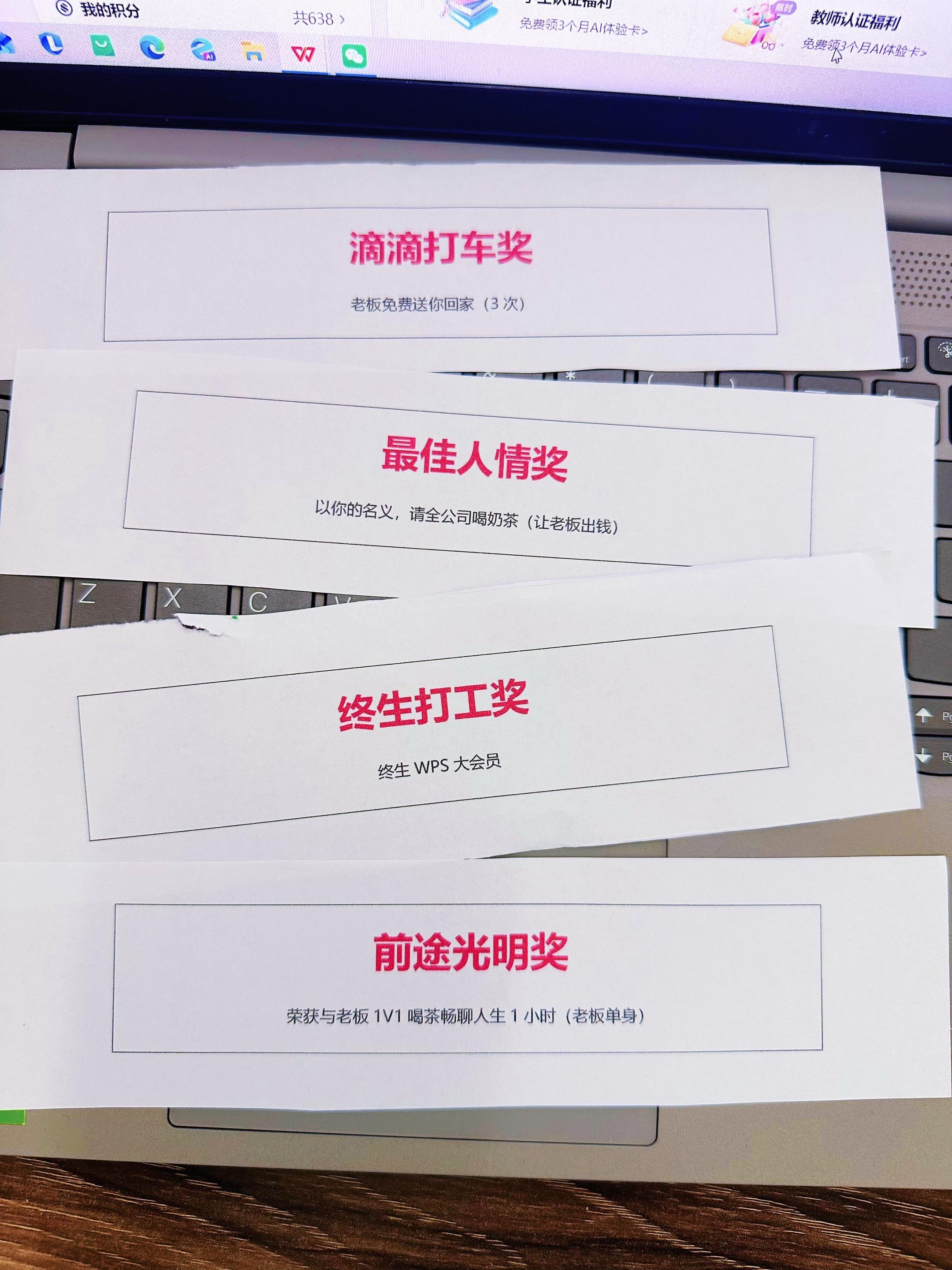 公司年会给我们准备的奖券也太搞笑了!我最想要那个复制粘贴奖呀!希望我复...