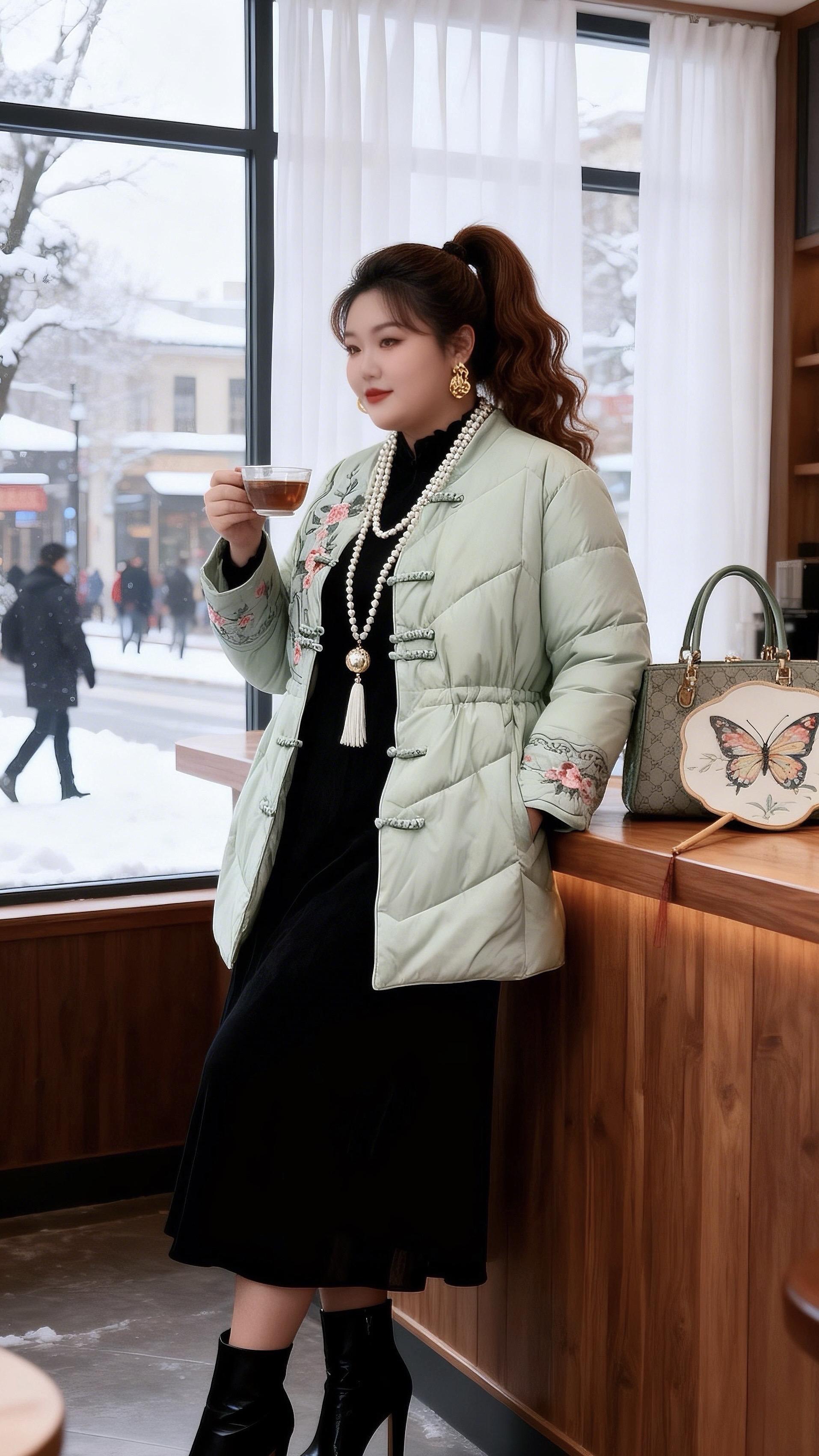 大码女装毛毛外套时尚保暖胖妹妹的冬季有效穿搭 时尚休闲穿搭