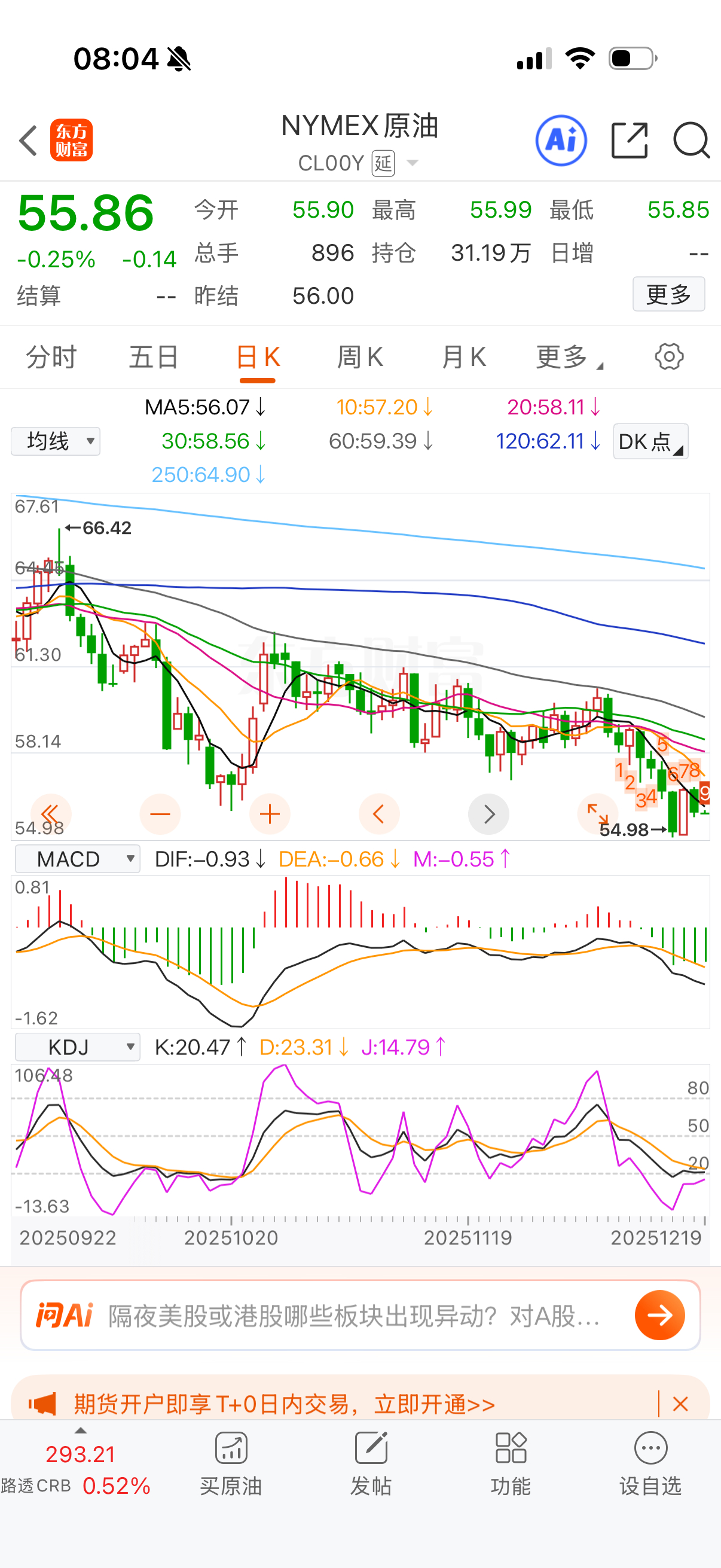 油和气又跌回去了。