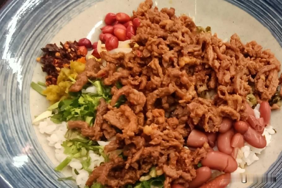 在昆明,有一种饭叫酸菜红豆牛肉饭,这是一种以酸菜红豆作为基本配料,再加上牛肉丝作为重要主料的吃食。这种套饭深受人们的欢迎,今天重温了一下,依然十分可口,虽然只是十六元一份,但店家一点都不马虎,整体配得十分到位。不错!但有谁知道,这种套饭的起源究竟是在哪里呢?酸菜拌红豆 酸菜红豆饭