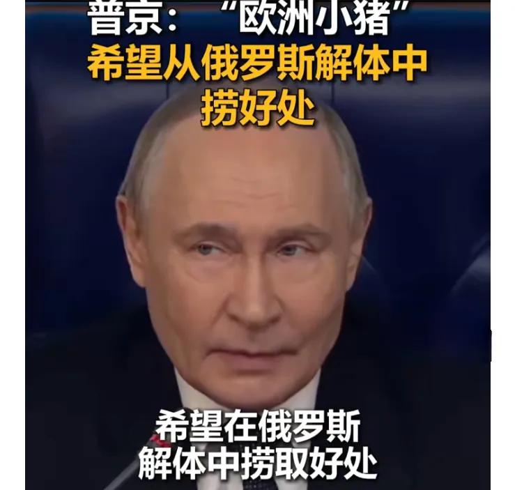 普京这发言也太敢说了!在俄国防部会议上,他一点没客气,直言欧洲领导人就是“小猪崽子”,跟着美国前政府起哄,想趁着俄罗斯动荡捞一笔好处。 这话听着够冲,但想想背景也能理解,欧盟一直在冻结俄资产,还琢磨着用这些钱援乌,这不就是往俄罗斯痛处戳嘛。 普京还说,本来想靠外交解决问题,可对方不配合,那就只能靠军事手段实现目标。 不得不说,普京说话向来直来直去,不绕弯子。这番硬气表态,既是怼欧洲的做法,也是在亮底线,估计西方那边又得议论好一阵子了!
