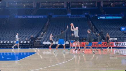 雷霆冠军后卫托皮奇在十月接受睾丸手术,今日据队记称在手术后第一次进行了赛前热身。