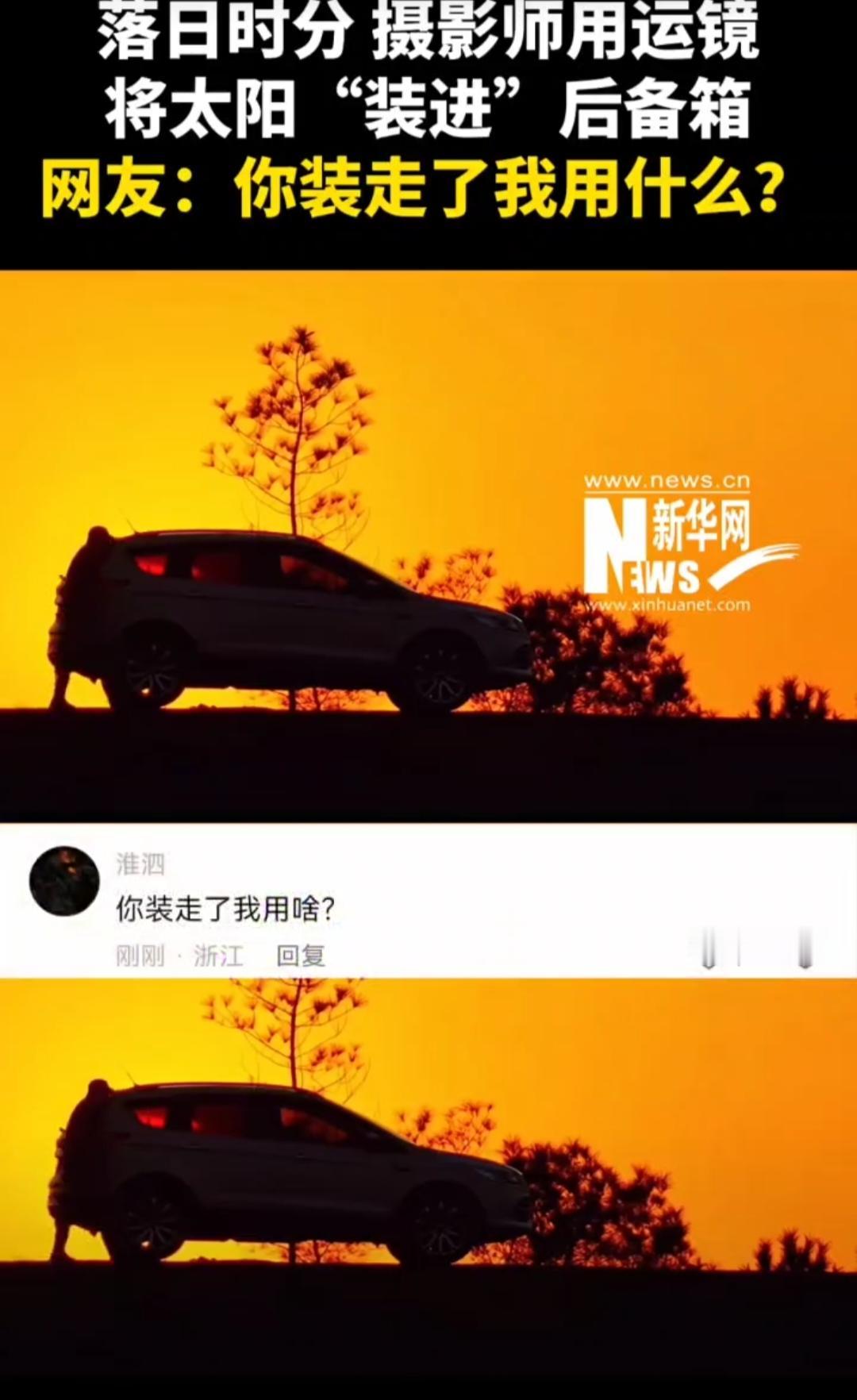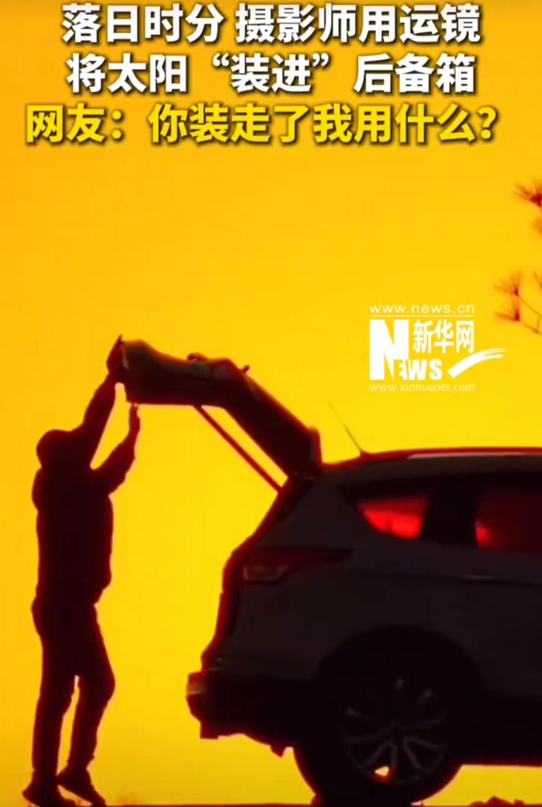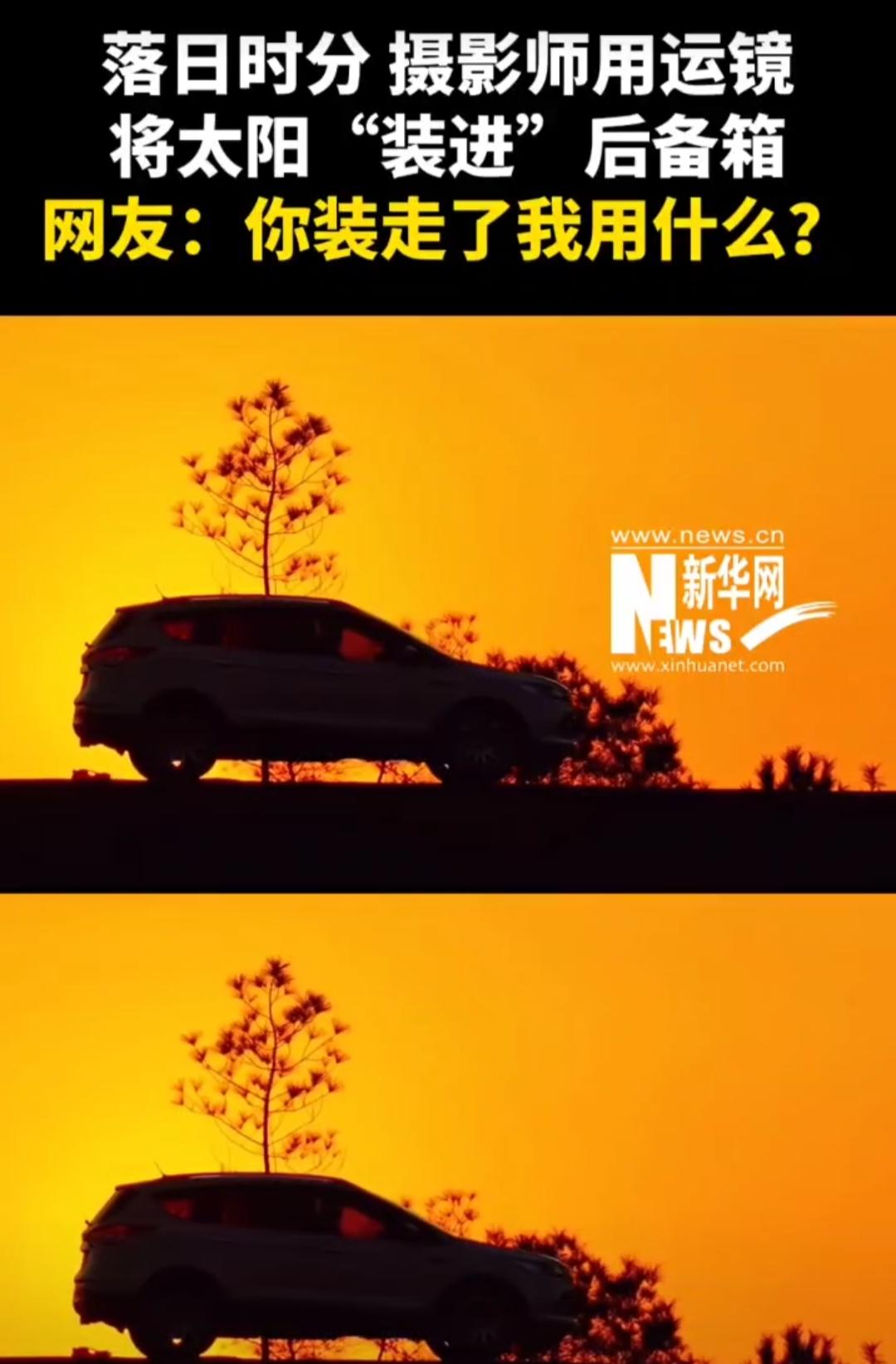 人怎么可以浪漫成这样! 摄影师用运镜将太阳“装进”后备箱。 这才是最顶级的诠释, 我把太阳带回家。 网友说:你装走了我用什么? 摄影师这一浪漫的举动, 真的是暖化了我的心。 日子怎么可以和谁过都一样呢? 怎么可以有人这么浪漫呢? 平淡无奇的日子, 因为这种浪漫而无比精彩, 无比美好。 当他把落日的温柔偷进后备箱, 我的心动却被这浪漫漾满了整片黄昏。 小时种太阳,长大偷落日, 大叔心里依然装着一个大男孩儿, 好调皮。 热爱生活的人生活中不会缺乏幸福 和发现美的眼睛, 果然有趣的灵魂万里挑一。