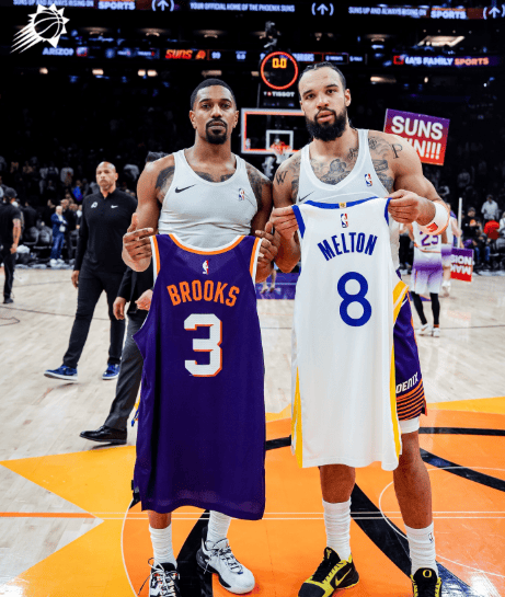 虎扑12月19日讯太阳官方更新ins,晒狄龙-布鲁克斯与梅尔顿互换球衣照片。