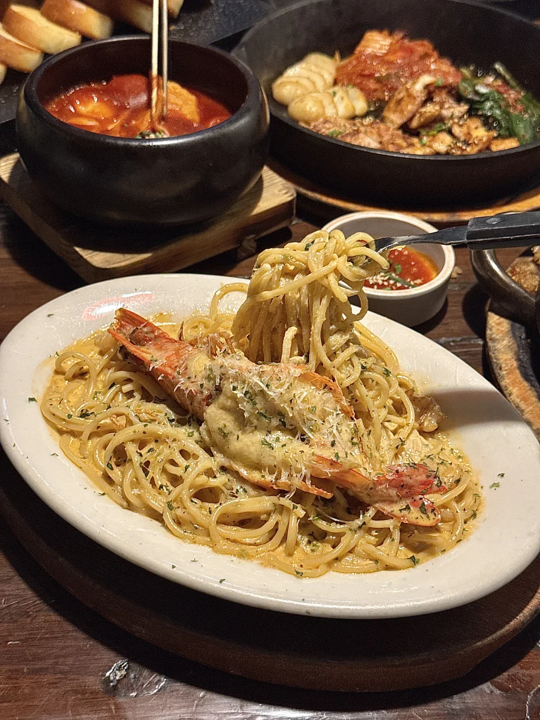 又排队40min终于吃到了…😅 不夸张…上海我的最爱韩料店!! 和朋友吃了很多次了,每次来必点的明虾奶油意面、韩式咕咾鸡、铁锅猪颈肉… 这次终于吃到限量供应的韩式普洱参鸡汤! 普洱和参鸡汤的搭配很期待,吃完果然没有失望! - 和传统鸡汤不一样的淡淡茶味,中和了鸡汤的腻,鸡肉炖得很入味,感觉特别滋补! 他家甜品也是真的很推荐!茉莉花茶奶油米酒🍶、三重薄荷生巧雪花冰、提拉米苏…… 唯一缺点:要排队😅…… 上海美食韩料创意菜灵感好店出道计划氛围感餐厅韩餐参鸡汤倍乐倍乐