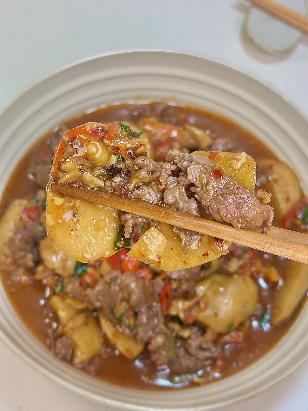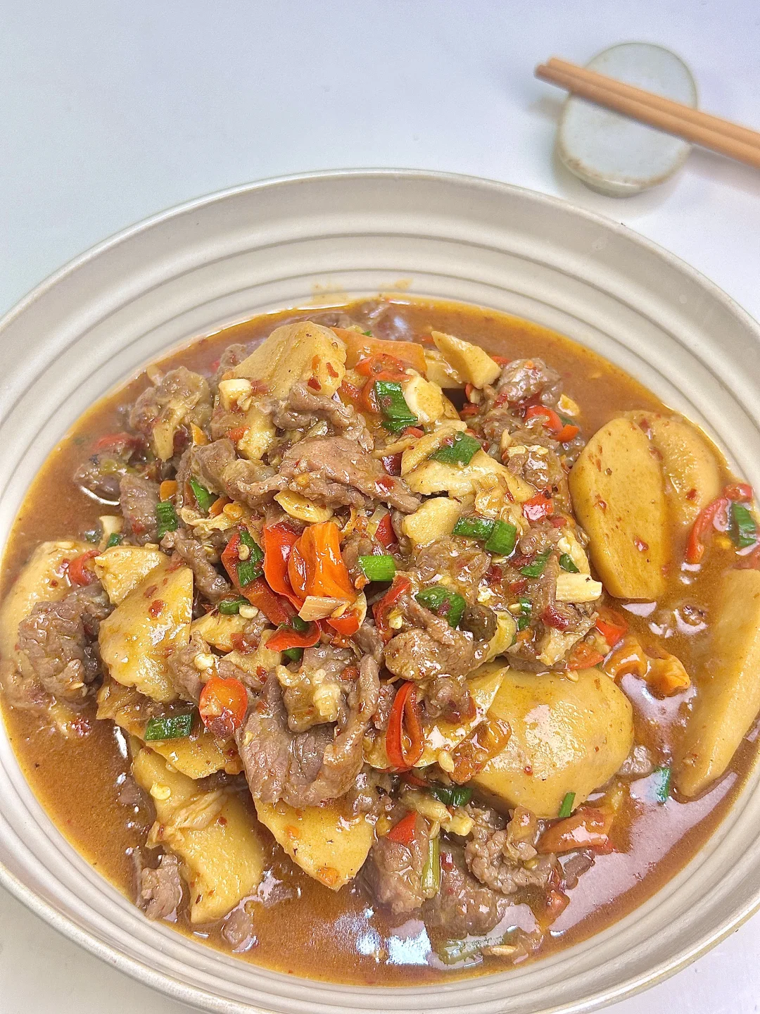江西人的下饭菜,拌米饭能吃三碗不夸张!红芽芋软糯,牛肉鲜辣嫩滑。上次做的高压锅版本好多姐妹说有没有不用高压锅的,这次来啦~