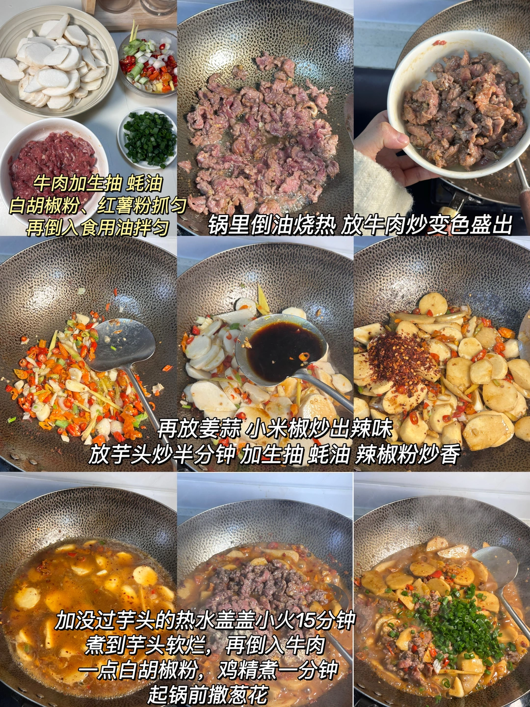 ✨食材:牛肉 芋头 姜蒜 小米椒 葱