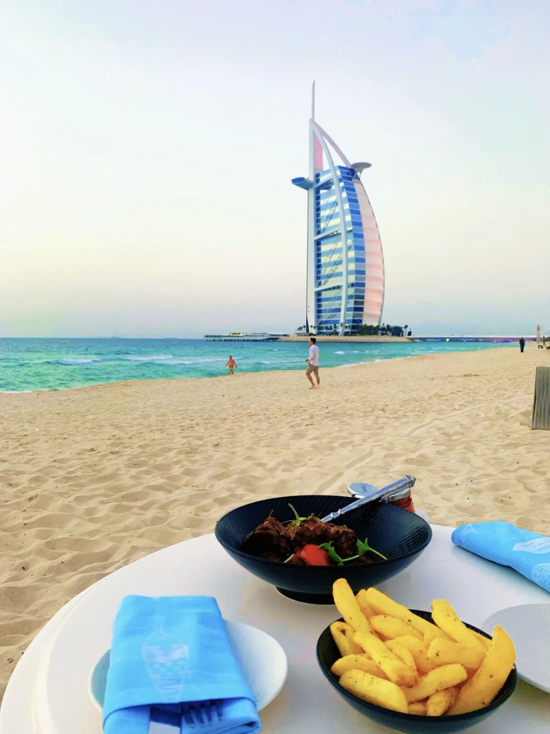 我没去朱美拉公共海滩🏖,日落时分赶在Shimmers吃的,还是Walk到那边在前台留了☎️,有空位了会Call我们