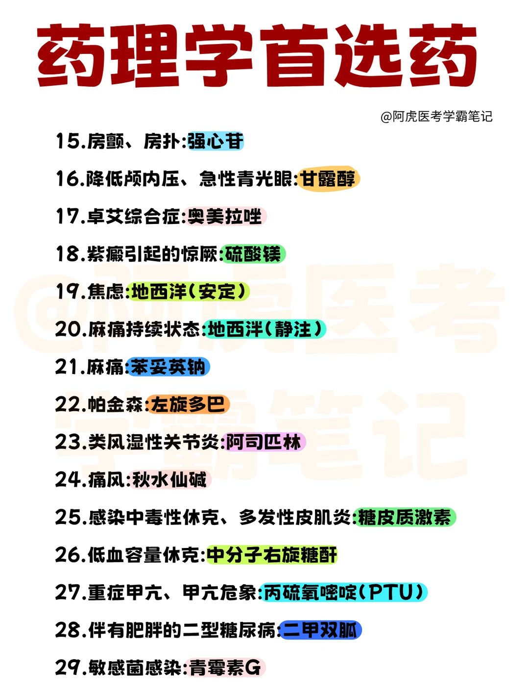 医学生笔记 阿虎医考 药理学 药物相互作用 医考 临床 药学考研 医学生学习 首选药 药理学笔记