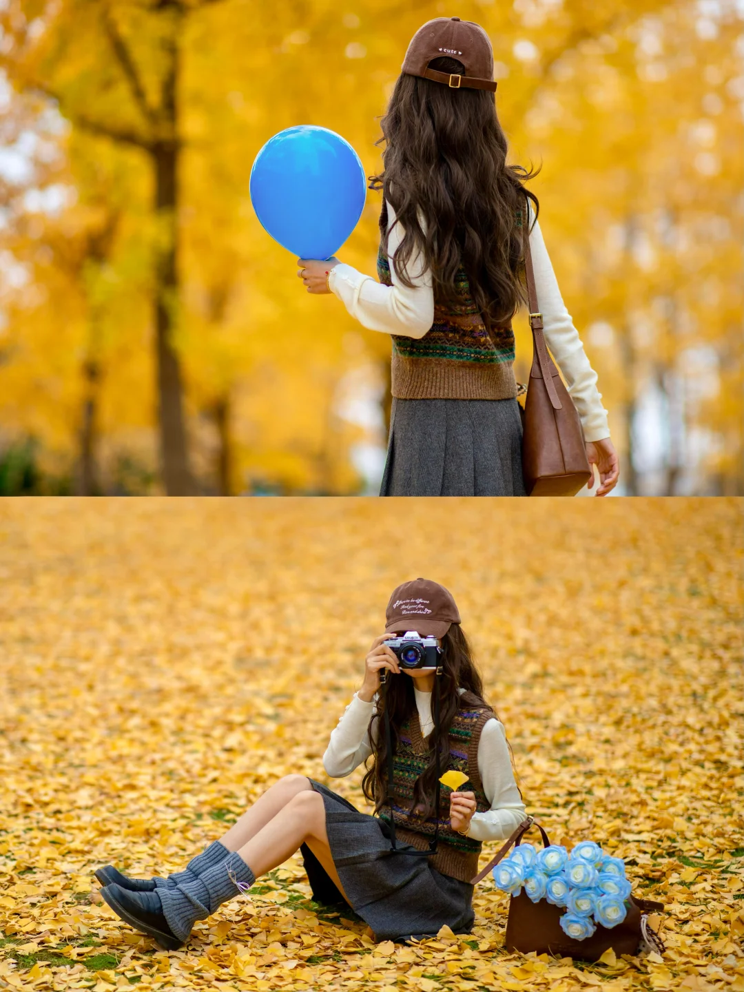 🍁 满地黄灿灿的银杏把秋冬氛围感拉满啦 快约上你的拍照搭子,一起来拍照记录吧 即使阴天也能通过调色get氛围感 📷 参数设置:iso100;85mm;f/1.6;1/800秒 调色教程:Lr 1️⃣、基本 色温:4450;色调:+2 高光:-70;阴影:+30 2️⃣、色调曲线 亮色调:+7;暗色调:+13;阴影:-11 3️⃣、HSL/颜色 明亮度:橙色+10;黄色+12 4️⃣、校准 蓝原色:饱和度+74 参数不是固定的,需要根据实际情况调整噢~ 🍂 不露脸拍照时,穿搭就成了妥妥的主角啦,今天选了紫涵这身美拉德色系,和秋天的氛围简直太配啦~内搭毛衣软糯亲肤,贴身穿格外舒服,绵羊毛的费尔岛马甲叠穿起来,秋冬穿搭氛围感瞬间拉满,外套有型不厚重,搭配起来舒服又好看~不管是拍照上镜,还是日常通勤的OOTD,都能轻松驾驭~