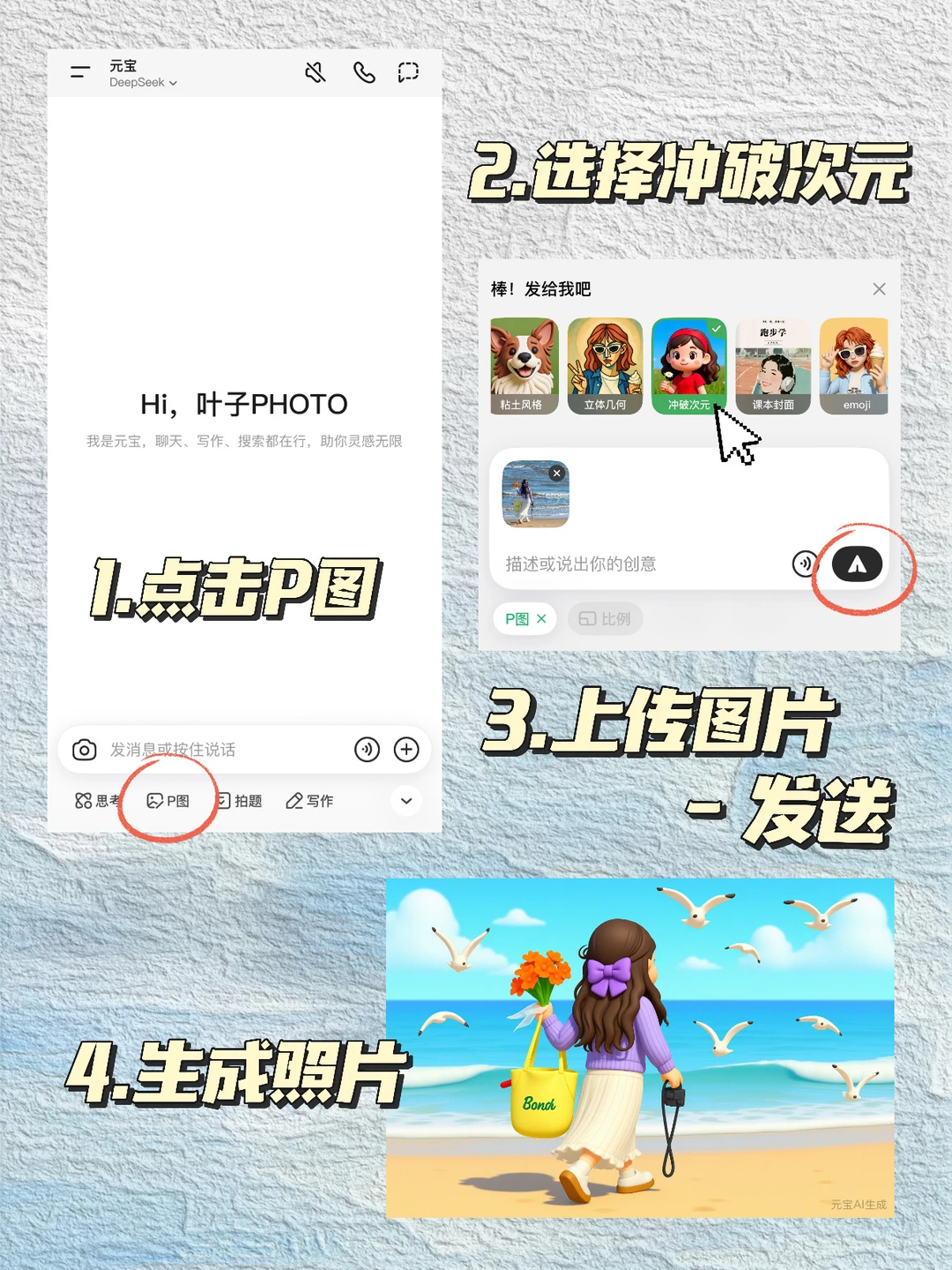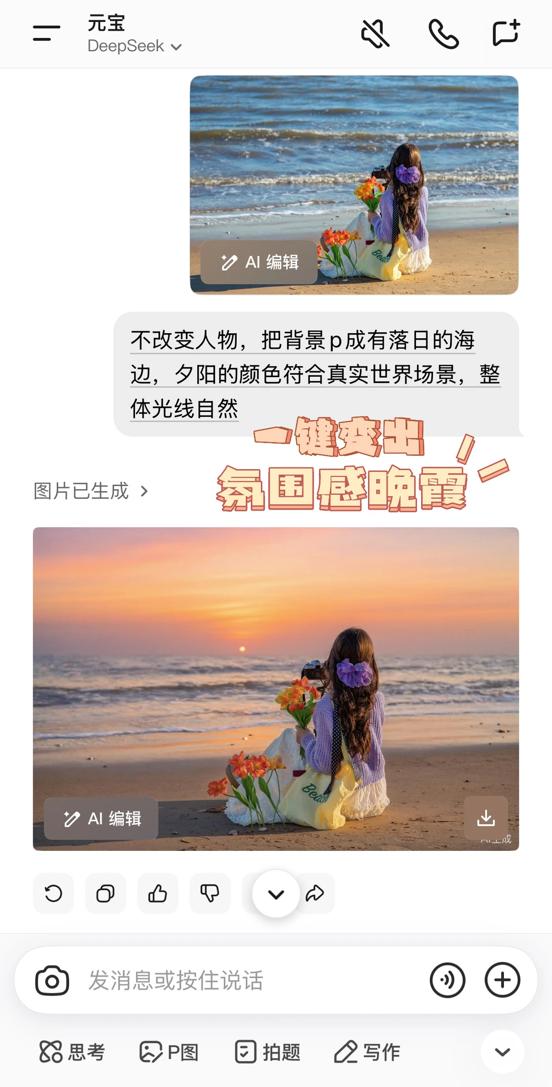 🌊 冬天想要看下雪的海?❄ 可惜这么浪漫的景色真的太少见了,不过现在有了元宝,只要对着它说“背景改为下雪的海边”,它能就立刻帮我p成冬日海边雪景大片~爱拍雪景的小女孩有福啦❄ - 不仅如此,元宝还能轻松帮我调整光线与氛围,弥补拍照时的各种小遗憾 出门在外阴天不出片?只需要输入这个指令:【不改变人物,把背景p成有落日的海边,夕阳的颜色符合真实世界场景,整体光线自然】就可以变出超有氛围感的晚霞啦🌄 - 元宝还有超多好玩的p图模版,这个冲破次元玩法可以一键生成超可爱的动森真人小手办,发朋友圈超有趣哦!宝宝们快去用元宝邪修出片吧~