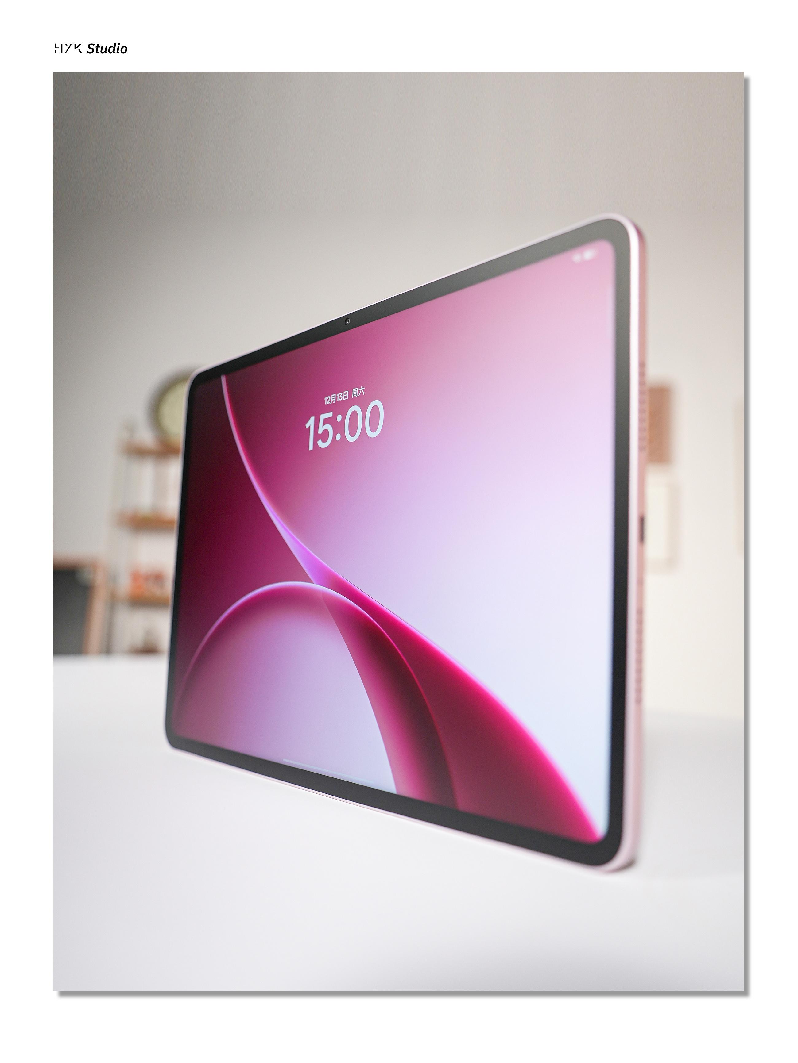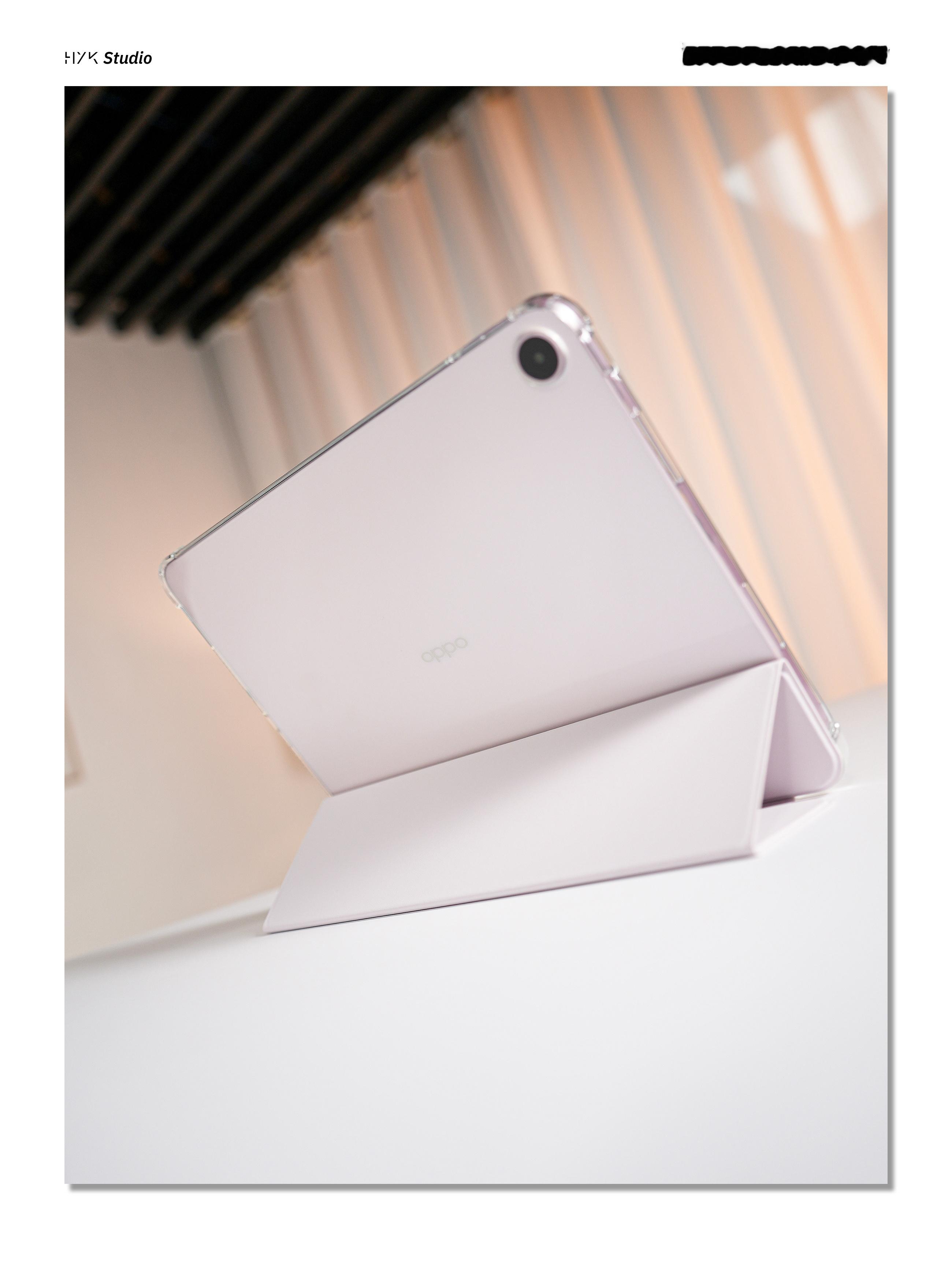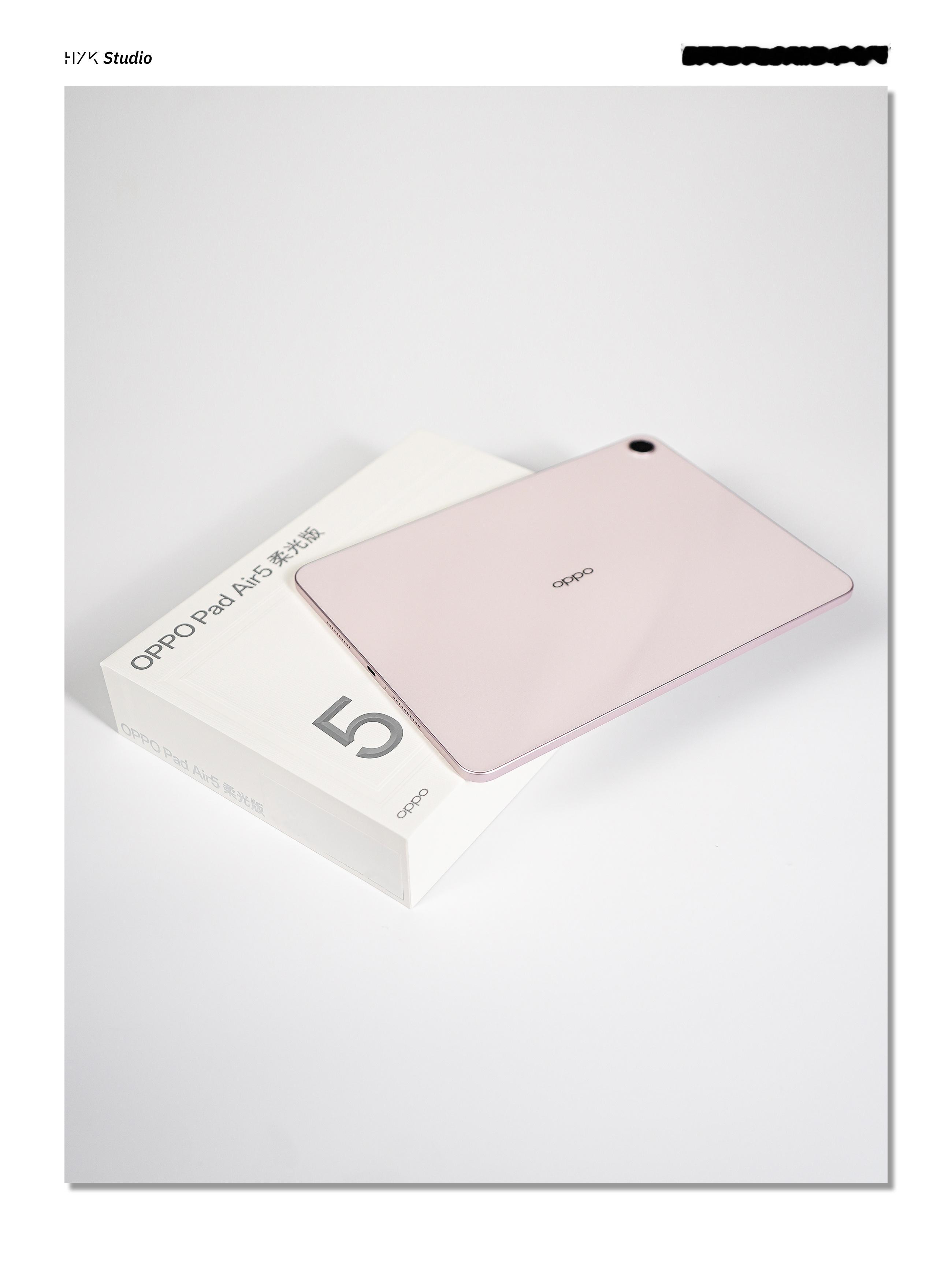 HYK图赏|OPPOPadAir5「星光粉」像淡淡的樱花粉,搭配上流光幻影工艺的金属背板,在光线下,能看到流光的效果。背板摸起来会有一种流沙颗粒的感觉,而且不会粘指纹。这一代不止颜值高,整机还很轻薄,并且还有柔光屏。这样实用且可爱的平板,戳到你了吗?OPPO平板OPPOPad