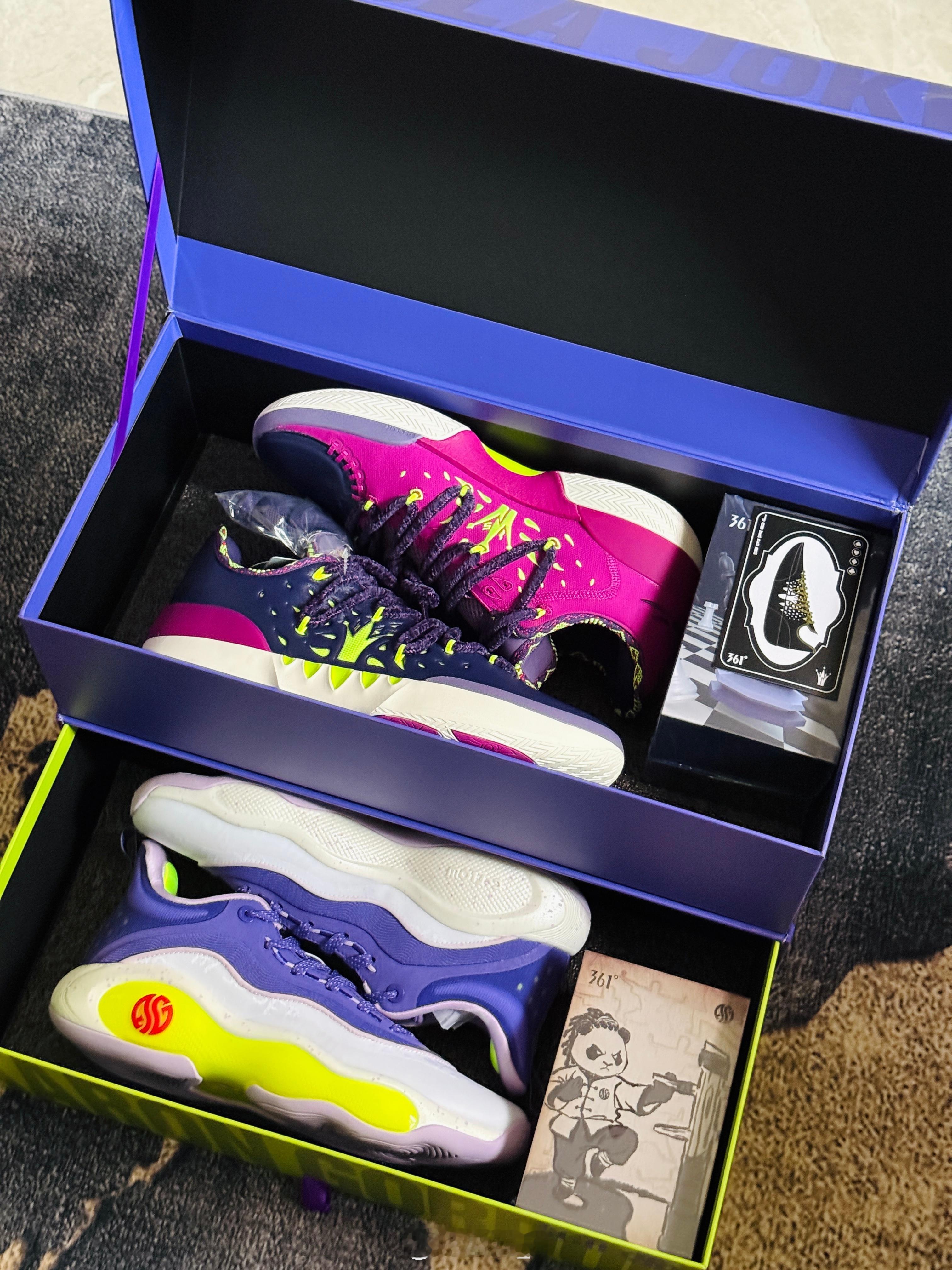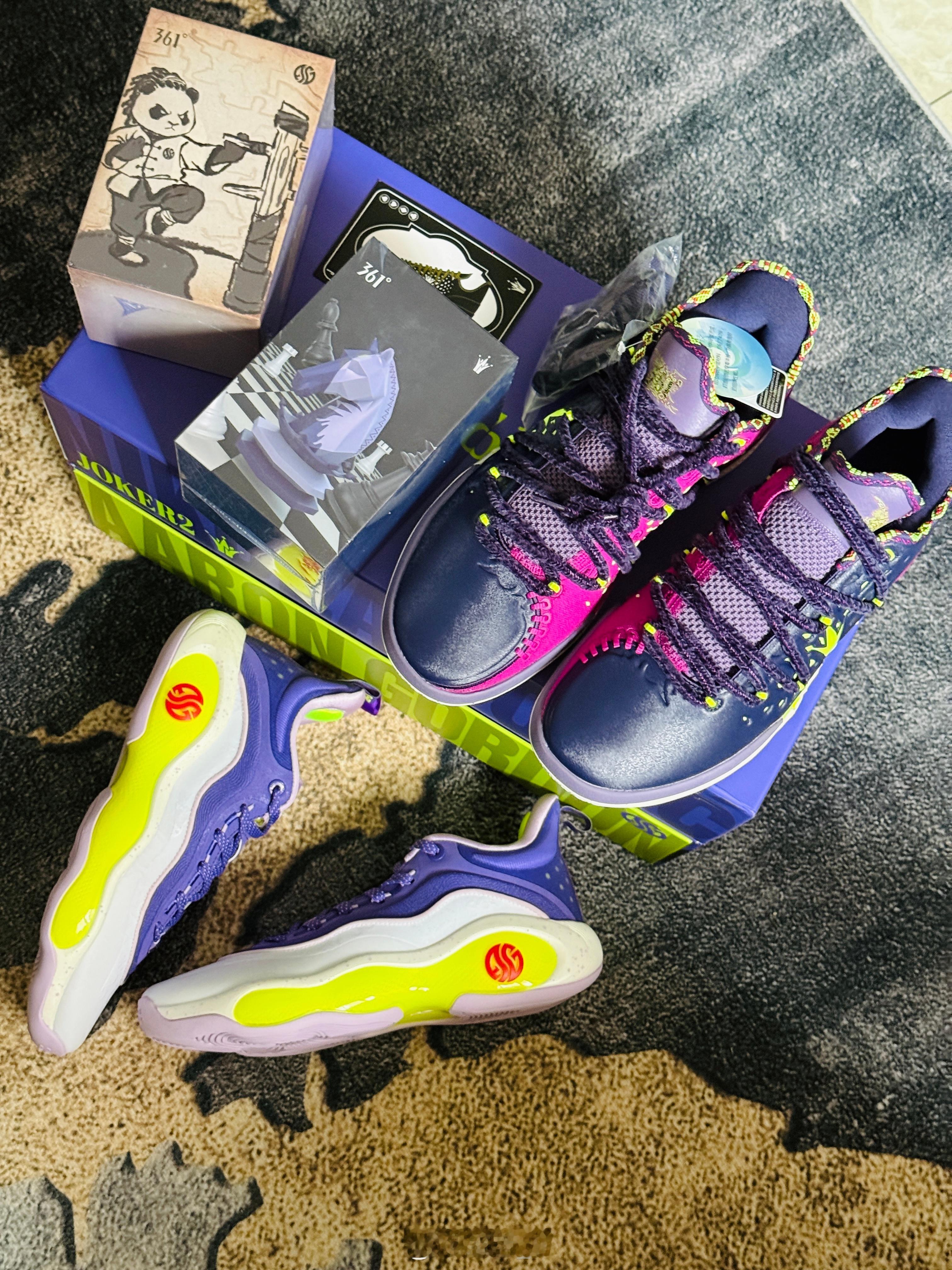 感谢送来的新年礼盒。Joker2和AG6的小丑配色,分别还有一个符合约老师和戈登喜好的小手办,很用心了。最近穿AG6实战了几场,非常靠谱。老规矩,评论区抽一双送给大家,就当新年礼物了。