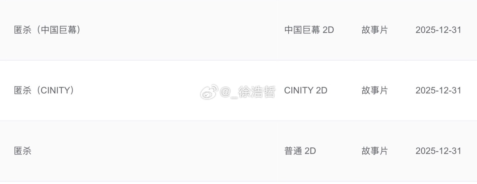 电影《匿杀》已录入专资办+发行通知出炉:上映时间:2025年12月31日 18:00开始放映类型:犯罪/悬疑片长:正片时长116分+贴片时长4分版本:普通2D、CINITY 2D、中国巨幕 2D、4DX 无IMAX版 预售可以开启跨年电影愿 电影匿杀