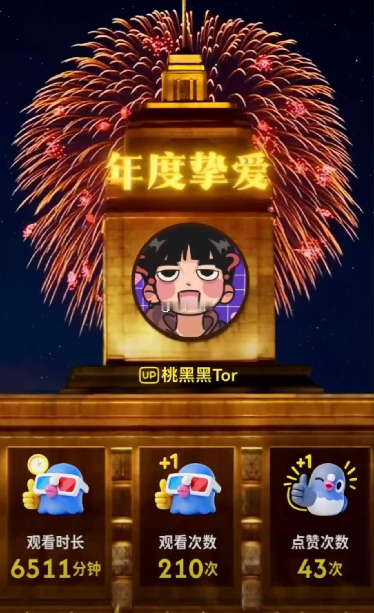 年度报告 我的B站年度报告和朋友的年度挚爱UP主是同一个,我还收到了桃黑黑的感谢信,我看别人都是视频怎么到他这就只有个信啊!大家的年度挚爱都是谁?