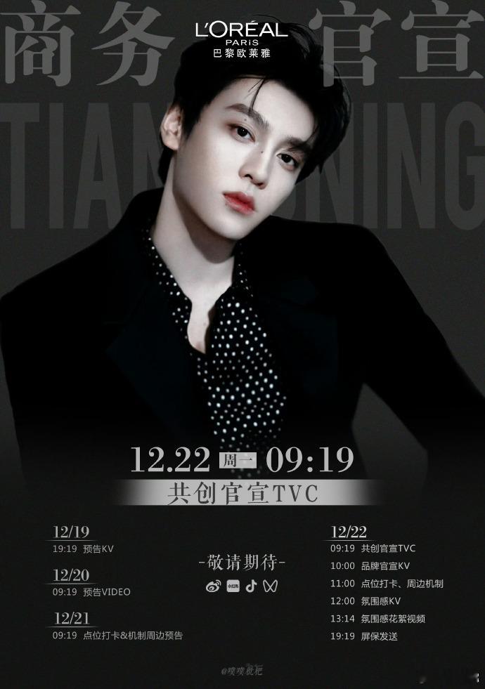 田栩宁代言巴黎欧莱雅田栩宁 时尚顶流与殿堂级品牌双向奔赴!田栩宁解锁巴黎欧莱雅彩妆代言,从预告KV到共创TVC的精心排布,满是高端质感与诚意。