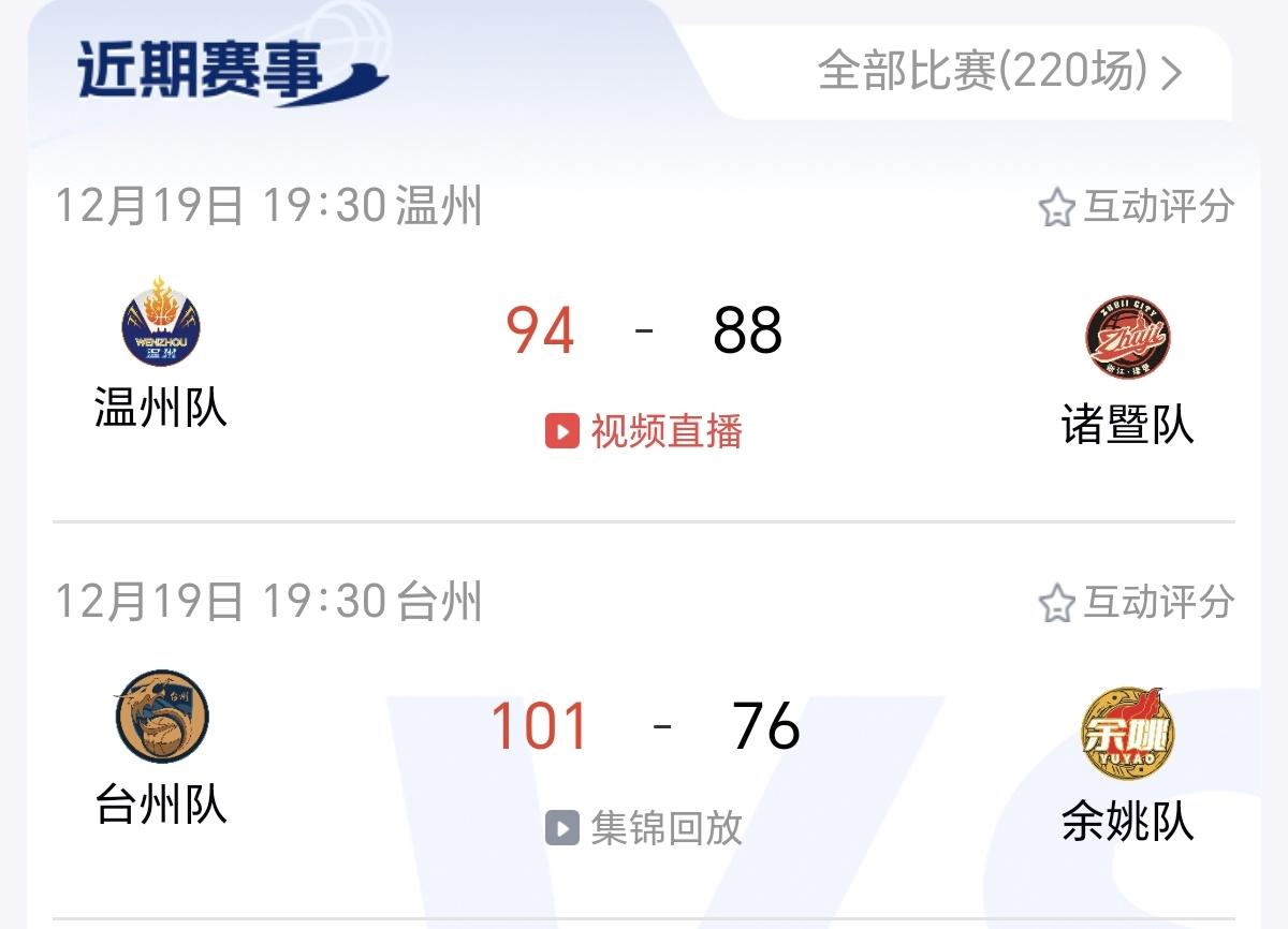 随着今晚台州队在VS余姚队的比赛中获胜,接下来a组4强出线的压力,又重新给到金华队了。目前台州队以11胜6负,排名a组第四。这样一来,在冲击a组4强这块,台州队获得了较大的胜场优势。 金华队能否出线,就要看后续剩下的几场比赛,能否全获胜。另外就是看台州队,接下来是否会持续保持胜利。如果台州队接下来都获胜,那也就锁定4强了。 所以,今晚这场关键比赛过后,接下来出线的悬念,就在金华队和台州队,后续比赛的胜负了。
