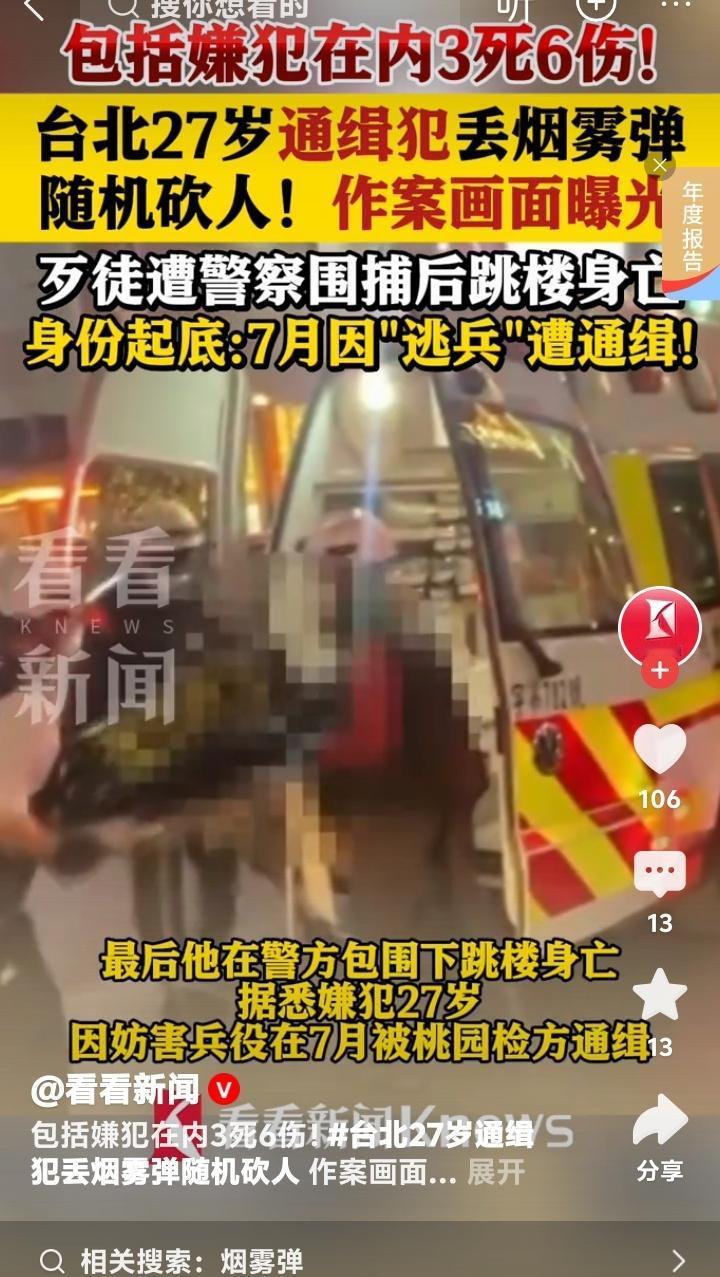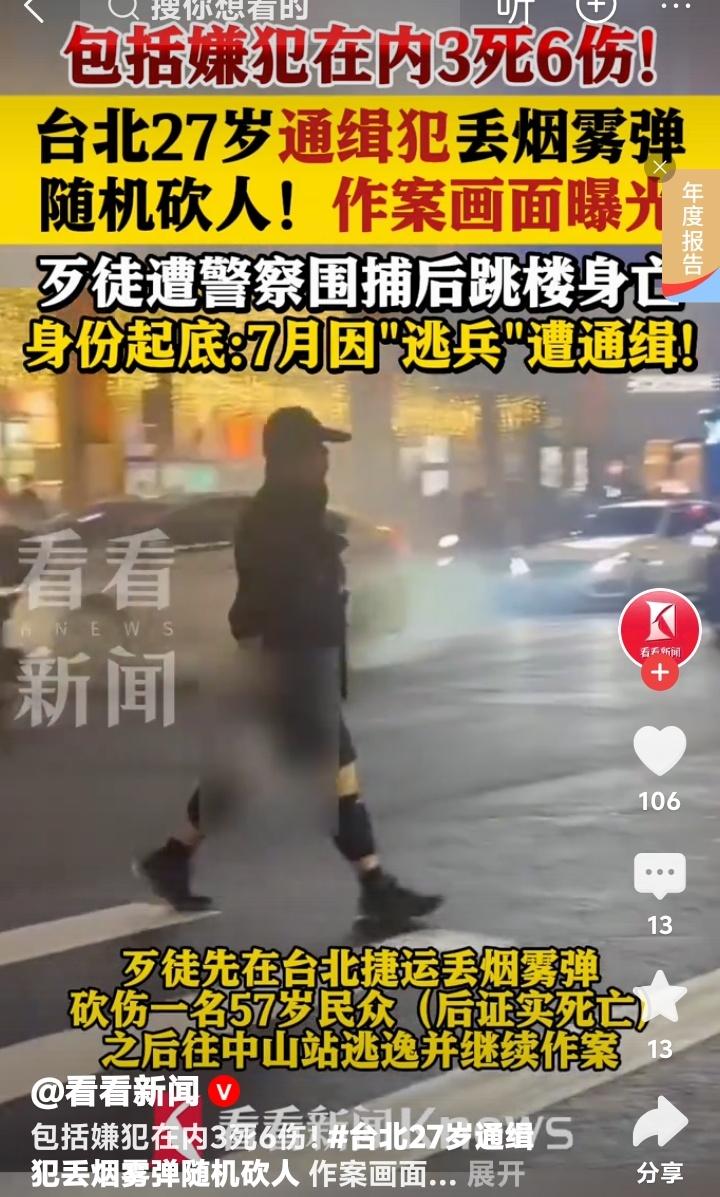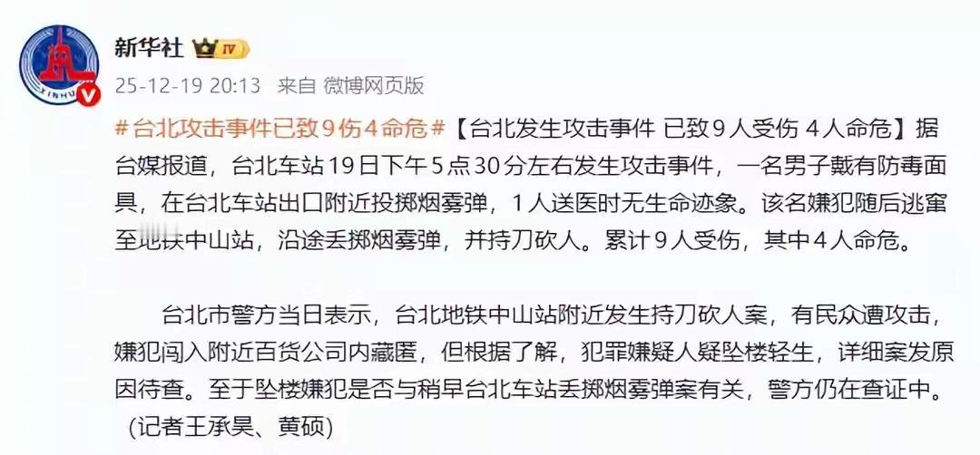 台北车站惊魂20分钟:27岁逃兵通缉犯戴防毒面具扔烟雾弹砍杀,3死6伤背后是公共安全网的全线溃败 傍晚五点半的台北车站,通勤人潮如织。谁也没想到,一名头戴专业防毒面具的年轻男子,从背包里掏出烟雾弹,掷向人群。浓烟瞬间吞噬了M8出口的灯光,尖叫取代了喧嚣。他抽出长刀,寒光在烟雾中闪动,第一个倒下的是57岁的余先生,他试图上前,却被一刀刺中后背。这不是电影,这是2025年12月19日,真实发生在台湾台北的连环袭击开场。 凶徒沿着忠孝西路狂奔,两公里外的捷运中山站成为第二屠场。更多烟雾弹被投出,恐慌如瘟疫蔓延。他冲进诚品南西商场,从六楼一跃而下,终结了自己的生命,却将无尽的伤痛留给了九个家庭。三死六伤,其中四人命危。警方确认,凶手张某,27岁,一名因“妨害兵役”被通缉半年的逃兵。一个被社会记录在案的通缉犯,如何能携带专业装备,在核心枢纽完成长达20分钟的杀戮? 翻开张某的人生,是一片灰色的轨迹。逃避兵役,被检方通缉,长期流浪在车站周边。台媒用“人生不顺”轻描淡写,但那张防毒面具、那些烟雾弹和长刀,无一不诉说着预谋与决绝。他是社会的边缘人,也是安全网络漏网之鱼。当制度未能在他坠落前接住他,最终他便选择让无辜者一同陪葬。 从台北车站到中山站,短短二十分钟,暴露出的是公共安全防线的千疮百孔。全台最繁忙的交通枢纽,为何能让通缉犯如入无人之境?危险品流通管控何在?监控与巡逻的响应机制为何如此迟缓?更讽刺的是,就在两个月前,同一车站刚发生过通缉犯性侵游客案件。承诺的整改,在鲜血面前显得苍白无力。 事件引爆岛内舆论海啸。社交媒体上,民众的愤怒与恐惧交织。一条高赞评论质问:“那些曾嘲讽大陆地铁安检‘扰民’的人,此刻作何感想?” 安全与便利的天平,在此刻剧烈倾斜。没有扎实的安检与预警,所谓“自由的便利”在暴徒刀下不堪一击。这不仅是台北的悲剧,更为所有城市敲响警钟。 悲剧背后,是更深层的社会隐疾。当兵役制度存在漏洞,当边缘青年失去社会联结与心理干预,他们便可能化为定时炸弹。张某不是第一个,也可能不是最后一个。我们谴责极端暴力,但也必须追问:社会是否给予了每个挣扎者应有的关注与出口?预防悲剧,不仅需要警力,更需要完善的社会支持网络。 夜幕下的台北车站,血迹已被清理,但心灵的创伤如何抚平?受伤的市民、破碎的家庭,以及数百万心生阴影的通勤者,都在等待一个答案。公共安全没有侥幸,唯有扎紧制度的篱笆,补牢管理的缺口,切实关怀每一个可能坠落的灵魂,才能让车站回归车站,让生活重获安宁。这起悲剧,必须成为改变的起点。 台北安全警示 社会边缘之痛 公共安全之反思 (来源:综合看看新闻、大风新闻、新华社、红星新闻、台媒及社交媒体公开信息)