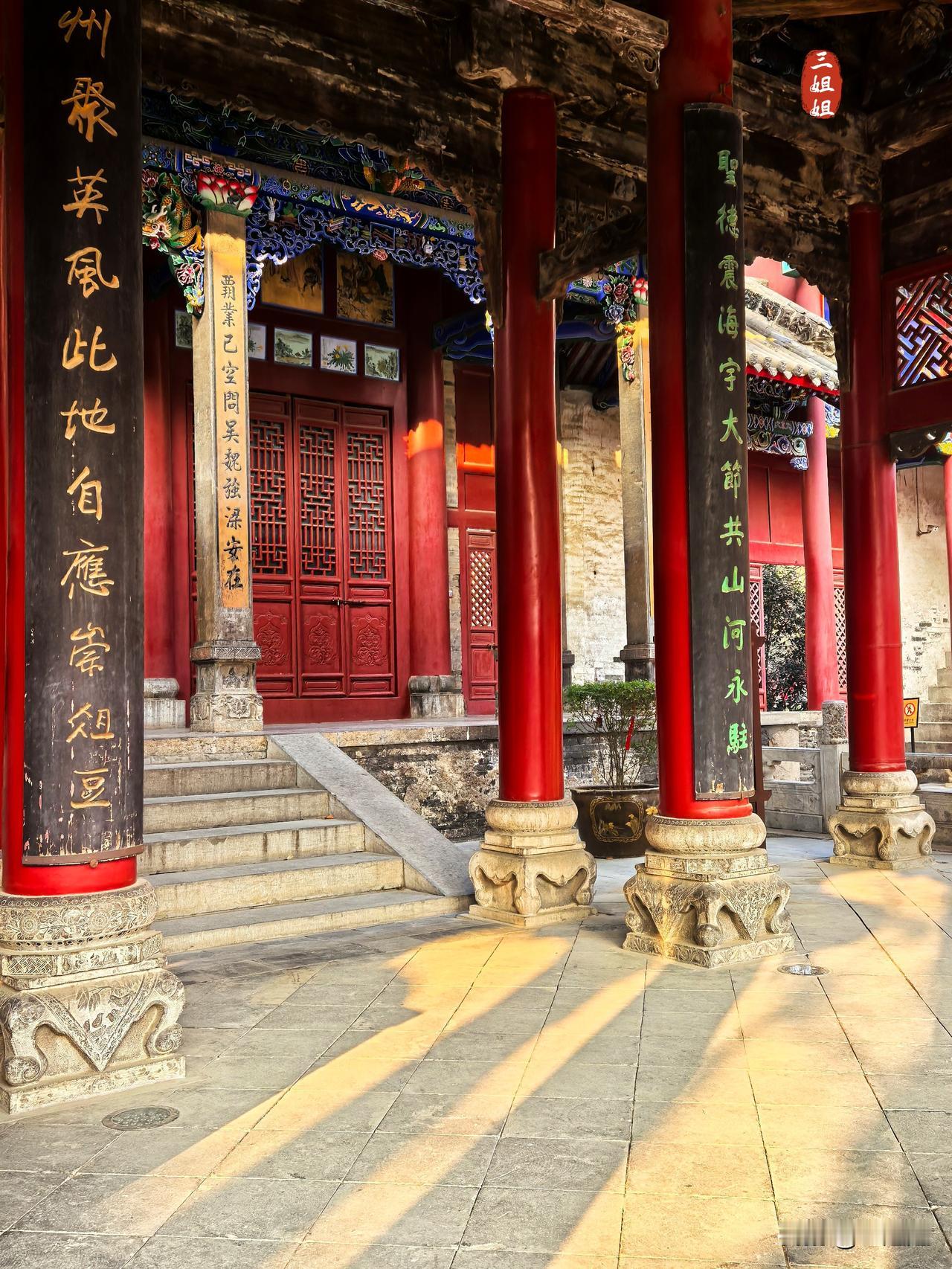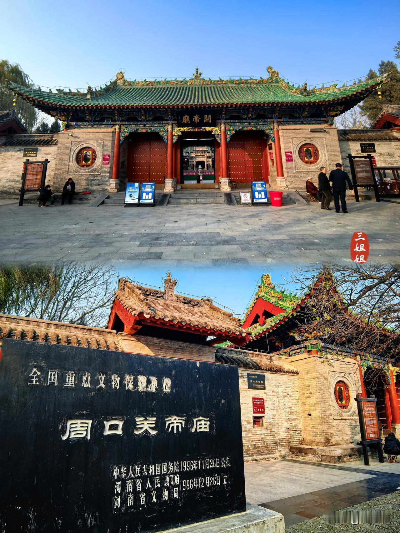 【冬日周口行】因水而建的关帝庙,堪称“中原关庙之冠”。 河南有不少关帝庙,我去看过洛阳关林、南阳社旗、开封朱仙镇的关帝庙,今天来到周口关帝庙,才知道这里是河南最大的关帝庙,被誉为“了不起的古建筑”。 明清时期,周口因水而生,因商而荣 ,南来北往的商贾常聚于此,便修建了许多会馆,现在的周口关帝庙就那时山陕客商捐资在沙颖河岸边修建的,幸存至今。 周口关帝庙布局紧凑、雄伟富丽,建筑几乎无木不雕、无石不雕;只可惜,我这次来时,周口关帝庙内的主体部分正在进行修缮维护,只能在四周驻足眺望,感受时光在一砖一瓦、一梁一柱之间的穿梭。 冬日生活打卡季 周口旅行风景