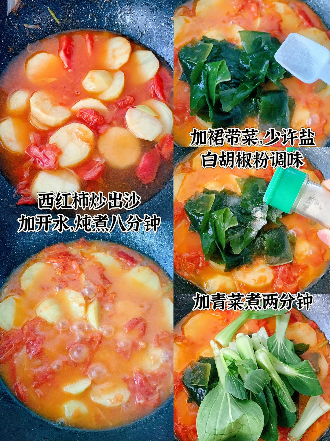 今日分享🥣番茄土豆裙带菜汤 讲真~这个做法真的好吃又掉秤!!把土豆当成主食真的吃不够啊,土豆🥔粉粉糯糯的,汤汁清爽解腻~ 减脂餐的终点🏁是家常菜…… 做法见图片 🕒时间:10-15分钟 🤞难度:⭐ [向右R]欢迎进入我的主页收藏……………………………………