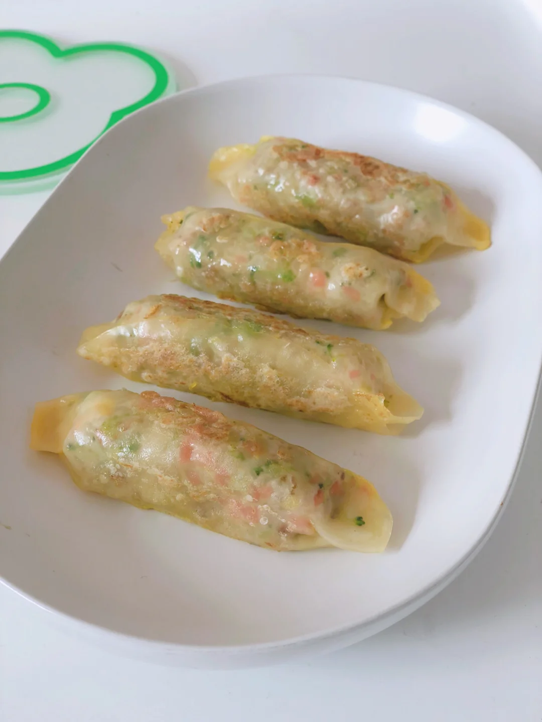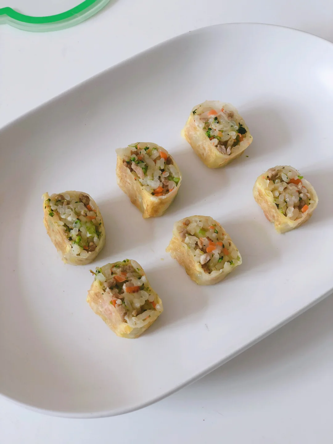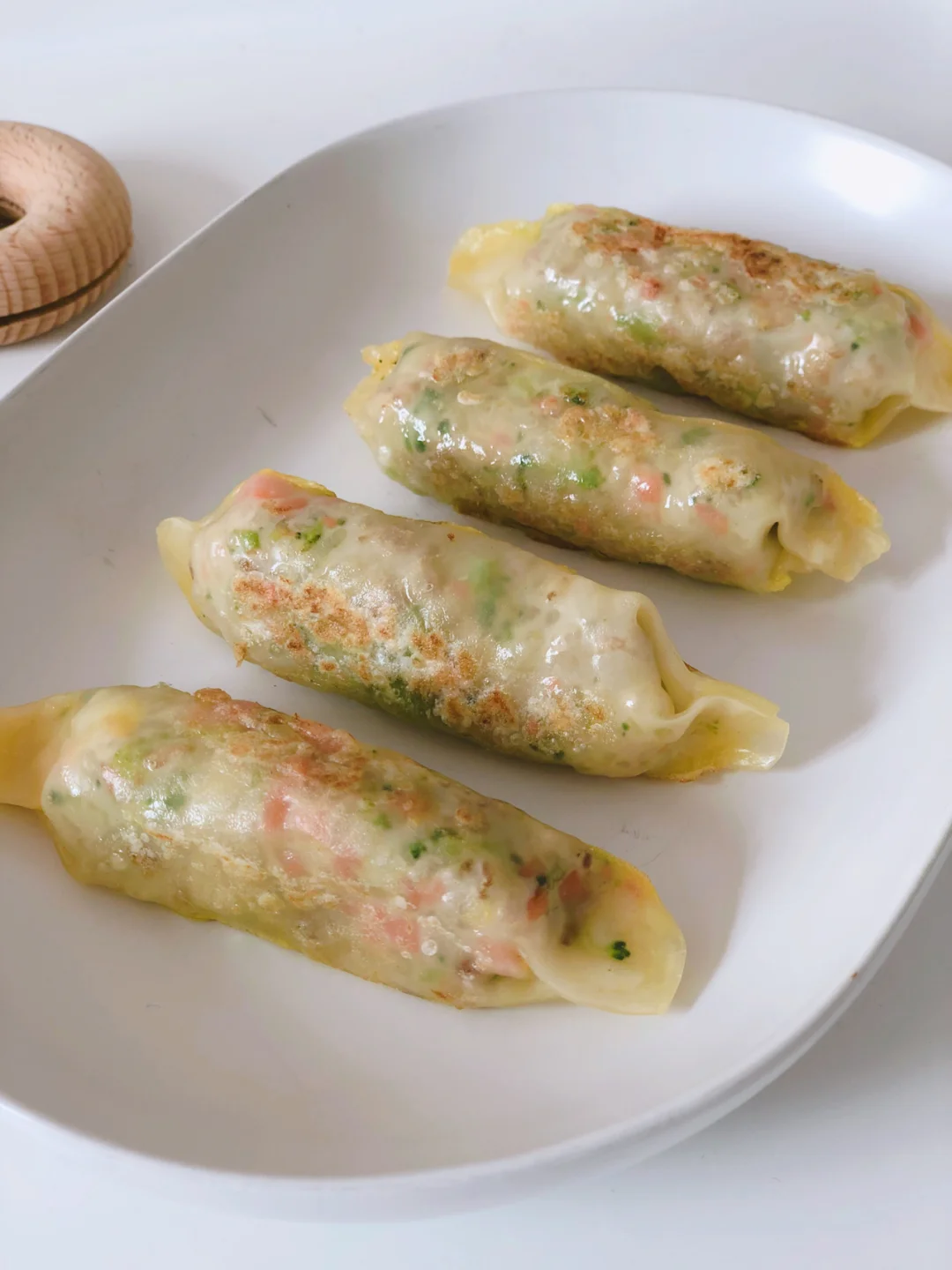 宝宝平时有不爱吃主食的时候,就要想法儿换种打开方式,比如今天这道饺子皮做的时蔬奶酪饭卷哦[偷笑R]里面包了肉、蔬菜、奶酪还有香香的胚芽米饭,我家两小只拿着几口就解决一个饭卷,吃的那叫一个香。