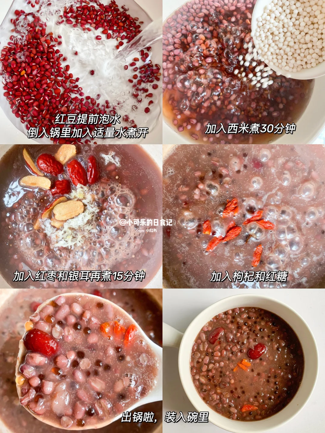 女孩子要多多喝这个!都是红色食材对女生很友好[赞R][赞R] 沙沙口感的红豆,软糯Q弹的西米,入口润滑的银耳、再搭配牛奶一口下去~暖身暖胃太舒服了!真的比奶茶还好喝![飞吻R] - 食材: 红豆、西米、红枣、枸杞、红糖、银耳、牛奶/椰汁 做法: 1⃣️红豆提前浸泡一小时以上,锅中倒入红豆加水煮开,再倒入西米煮30分钟 2⃣️再加入银耳、红枣继续煮15分钟、出锅前放入红糖、枸杞,倒入牛奶搅拌均匀即可 - 喝上一碗全身暖fufu的,太舒服了,快安排吧