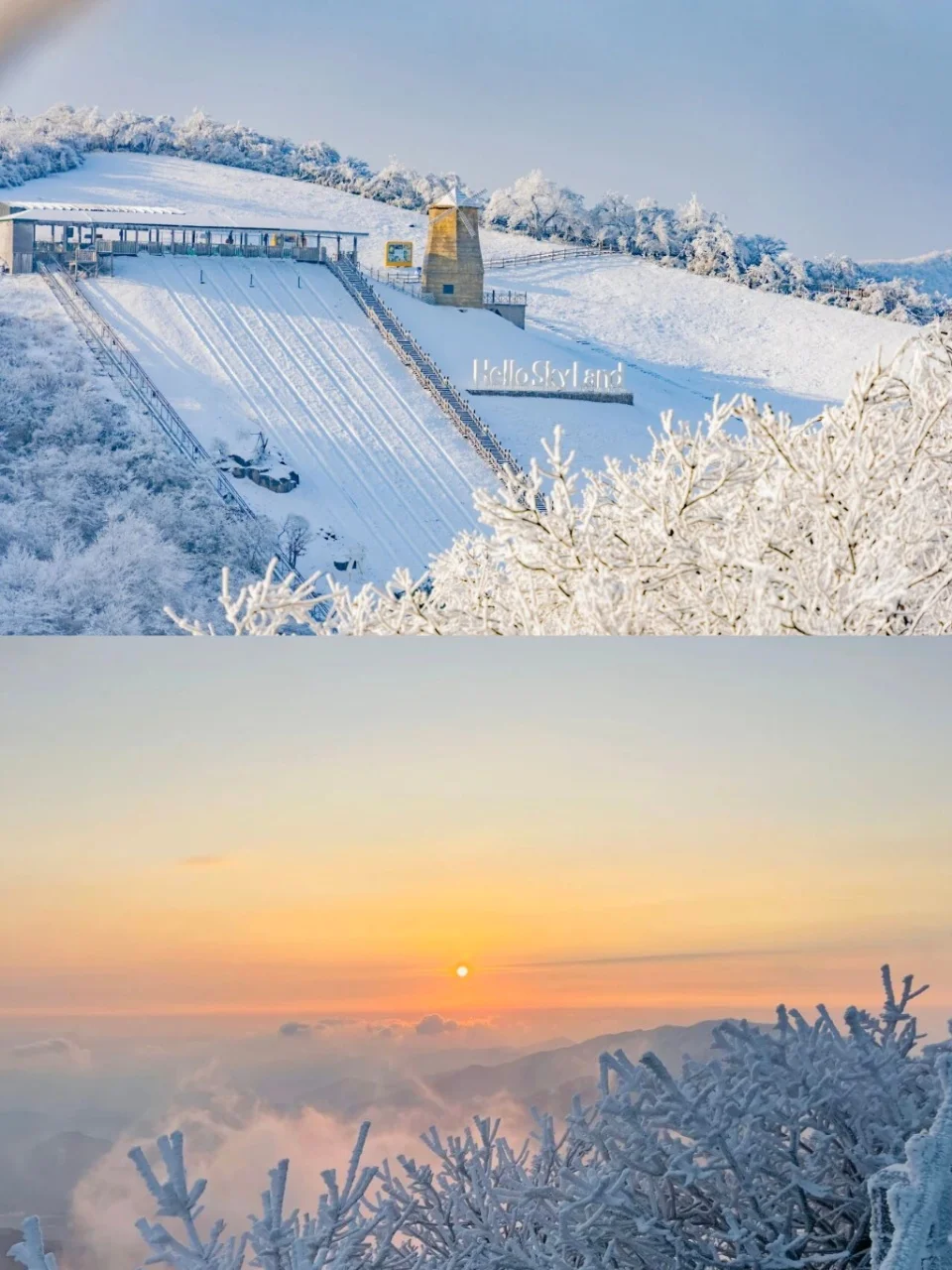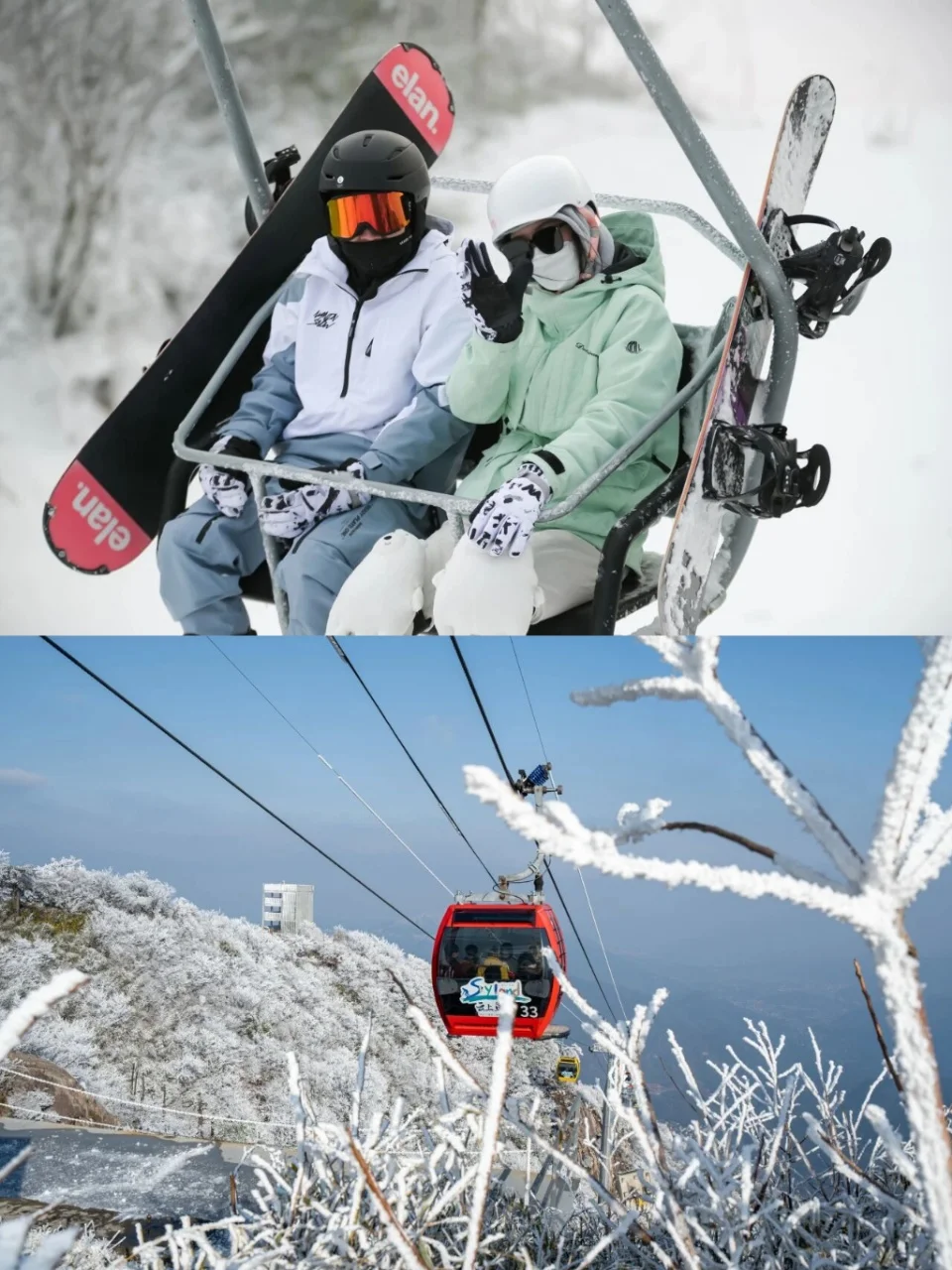 更藏惊喜:索道上山途中,雾凇林穿廊而过,银枝琼叶宛如冰雪童话秘境 ✨ 滑雪之余,不妨定格一组氛围感大片,将这份冬日浪漫珍藏!