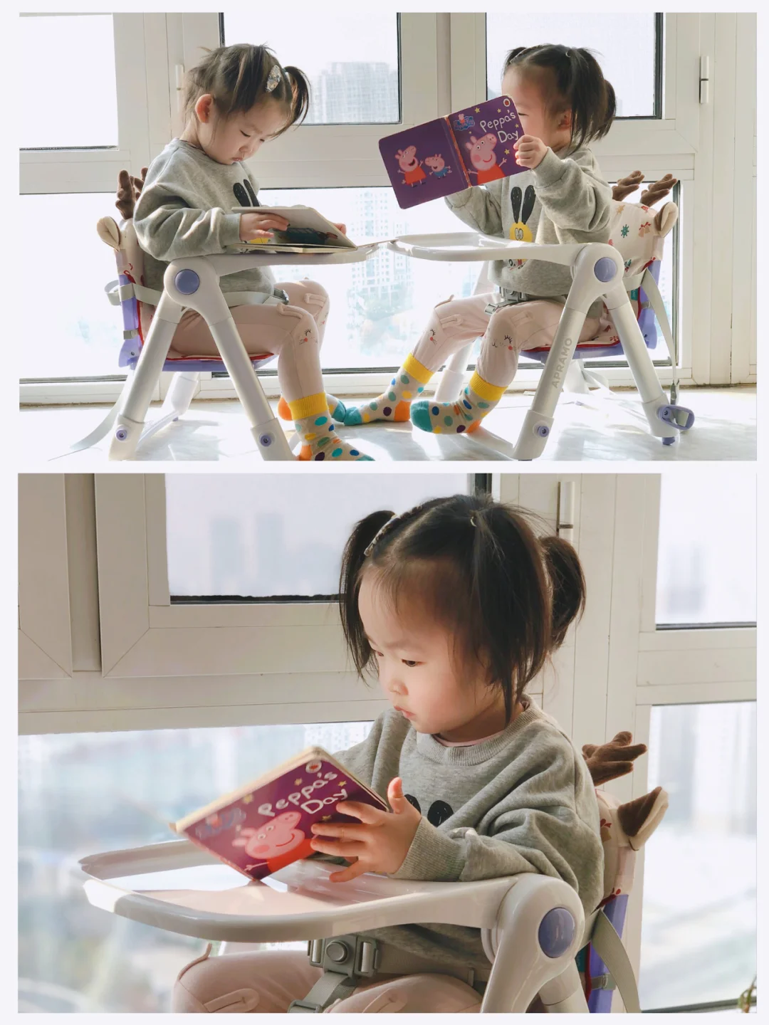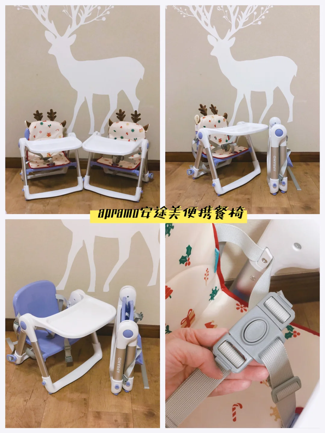 ❤️最近给伊伊丫丫入了安途美便携式的餐椅,真的太方便了,全身18公斤,小巧轻便,但也不失稳定,出门走到哪都可以随身带着,我和我老公终于不用担心出门吃饭餐厅没有宝宝椅啦。现在两小只除了吃饭外看绘本也超喜欢坐,更喜欢有鹿角的圣诞节内衬垫,敲可爱。