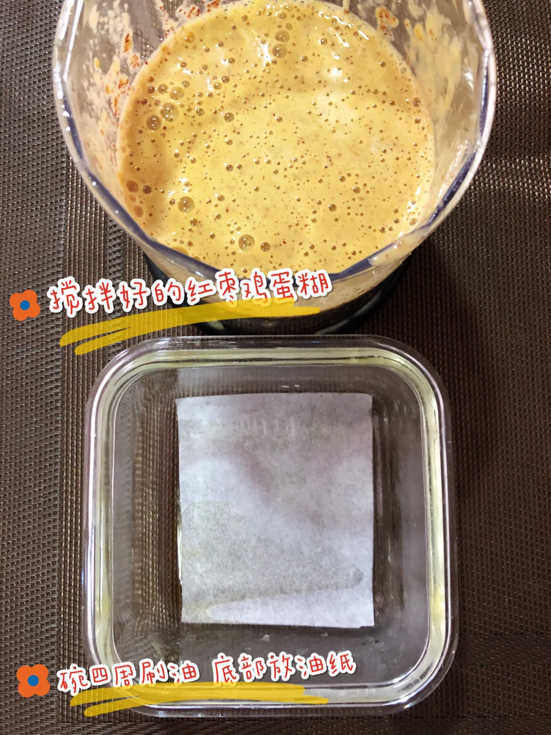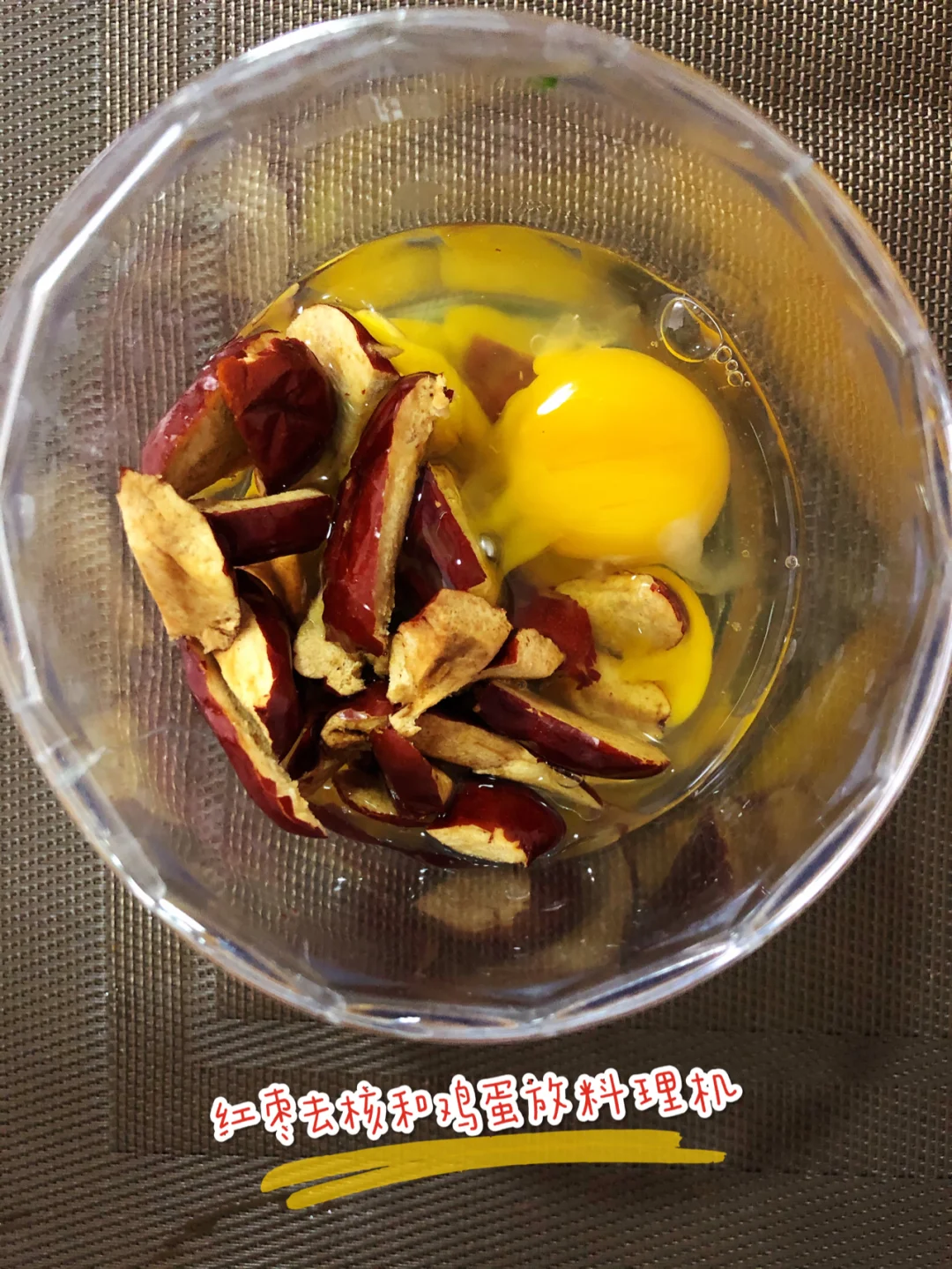 🎀2.红枣蒸糕:红枣洗净,去核,切块和鸡蛋放料理机打成糊,碗四周刷油底部放油纸倒入糊糊,上锅大火蒸15分钟,关火焖5分钟,脱模后切成宝宝适合拿的大小就可以了(☝P.S. 蒸这个我一直用4颗稍大的红枣和2颗鸡蛋,蒸出来的状态很满意,我们家大人小孩都很喜欢吃[斜眼R])