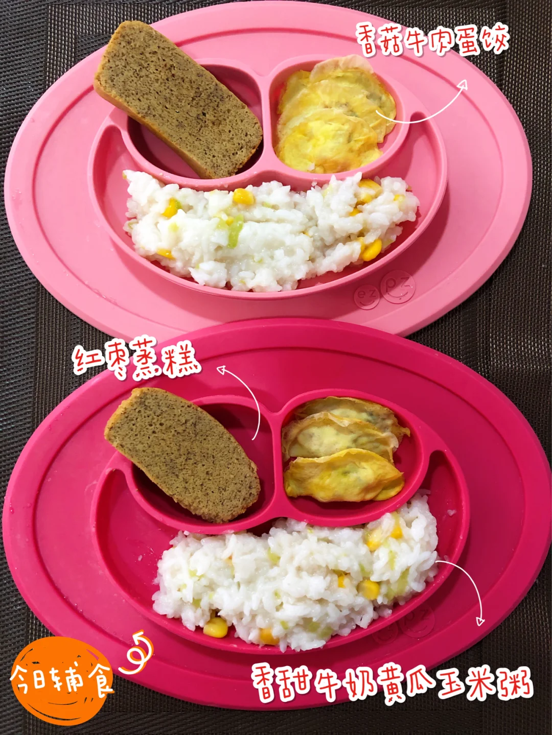 [飞吻R]今日宝宝食谱:🌟香菇牛肉蛋饺& 🌟红枣蒸糕&🌟香甜牛奶黄瓜玉米粥