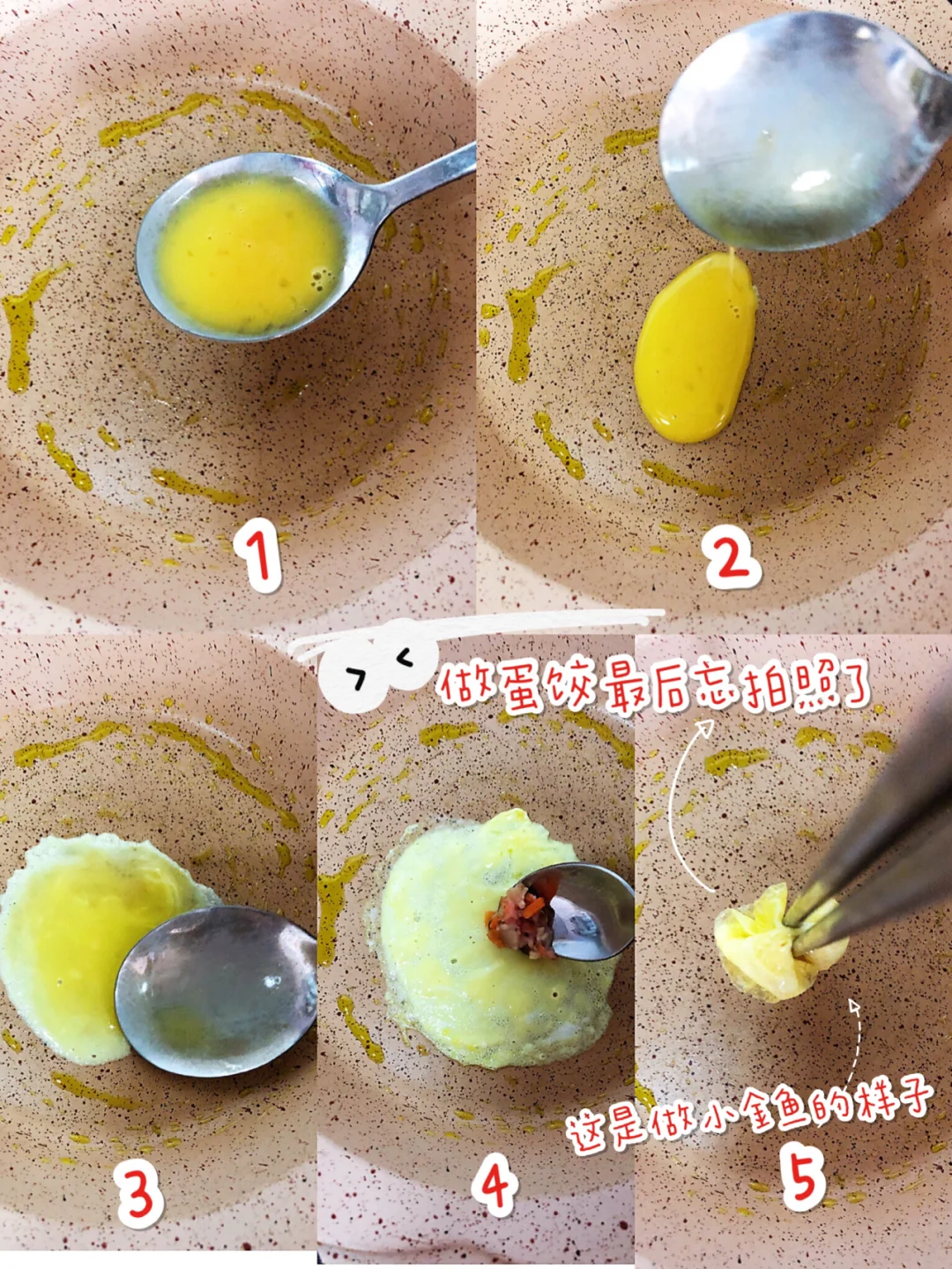 [飞吻R]制作方法:🎀1.香菇牛肉蛋饺:香菇和胡萝卜水开后焯一下,切成碎末,牛肉用清水多泡几遍,切块放料理机搅成泥状,放入胡萝卜和香菇碎,加少许盐搅拌均匀,肉馅就调好了,鸡蛋打成鸡蛋液,平底锅刷油,勺子舀一勺蛋液倒入锅内,迅速用勺底顺时针把蛋液摊开成圆形,放入一点肉馅,把成圆形的小蛋饼对折,用勺子把边压一下就可以了,做好后放在盘中盖上保鲜膜上锅大火蒸15分钟,关火焖5分钟就可以了.我刚开始是想做金鱼蛋饺,发现馅需要放的少出来的样子才可爱,直接放切改成饺子状,这样放的馅可以多些,宝宝更爱吃[赞R][赞R](☝P.S.哪怕对折后蛋液还没完全凝固也没关系,因为最后还要上锅蒸,月龄小的宝宝可以把胡萝卜、香菇和牛肉一起搅成泥,这样宝宝不怕嚼不烂,另外锅内刷油只刷一次就可以了,一定要小火摊)