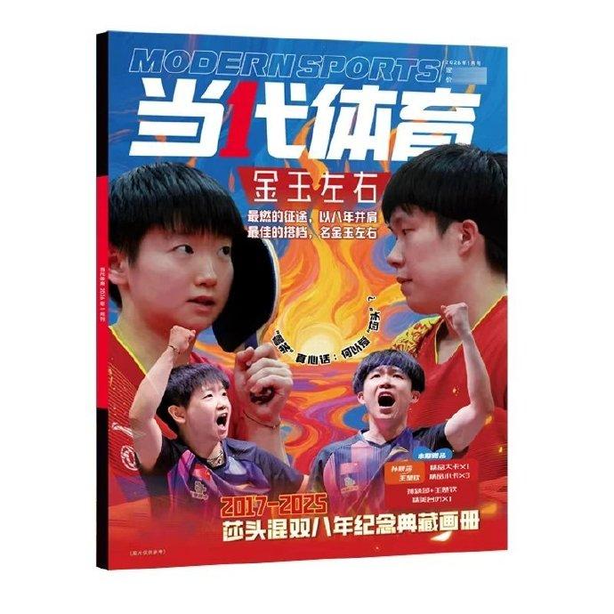 封面主题“金玉左右”(串联两人自2017年搭档至今的关键节点,包括青奥会首冠、巴黎奥运混双金牌及2025年多哈世乒赛混双三连冠。