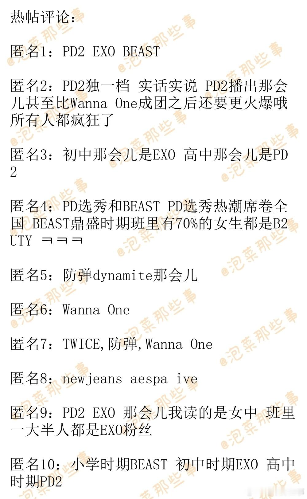 🔥韩网热帖评论翻译🔥抛开粉丝滤镜 鼎盛时期体感人气最火爆的爱豆是谁啊?韩网原帖帖主发问: 抛开粉丝滤镜 鼎盛时期体感人气最火爆的爱豆是谁啊?我觉得是SHINee,EXO,PD2 真的一点儿都没有夸张哦 小学那会儿是SHINee 初中那会儿是EXO 高中那会儿是PD2 全校女生都陷入了疯狂 其实我也不算是粉丝 但要是不跟着一起喜欢的话 甚至会被同学们排挤哦cr.instiz