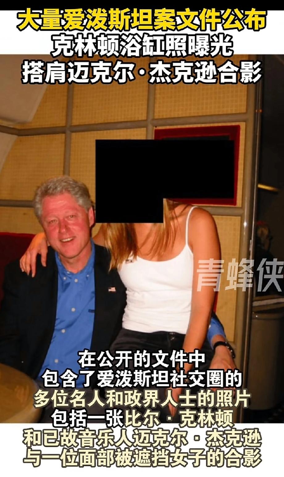 爱泼斯坦案文件现克林顿浴缸照 。当地时间12月19日,美国司法部公布爱泼斯坦案相关调查文件,这下可炸锅了。文件里有美国前总统克林顿在浴缸和泳池的大尺度照片,一张是和两人并肩游泳,其中疑似爱泼斯坦同伙吉斯莱恩·麦克斯韦,另一张克林顿在浴缸里双手枕脑后。 这批文件大量提及克林顿,却很少提到特朗普。司法部要公开数十万份记录,完整披露还得数周。白宫众人反应不一,有人说克林顿在放松,有人直呼“我的天哪”。这爱泼斯坦案水太深,克林顿这照片一曝光,不知道后续还会有啥猛料。