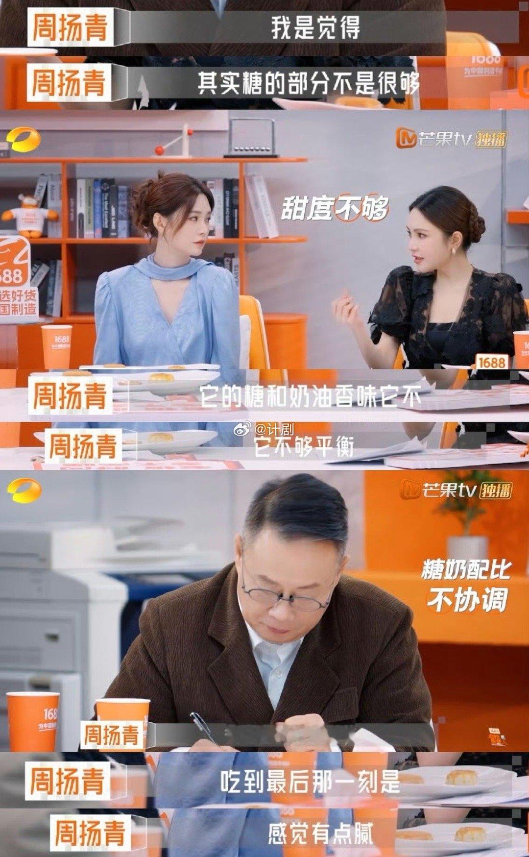 周扬青吃甜品也要讲究balance老板是新人 周扬青吃甜品真的很有一套,一口下去就能把甜度、口感、层次分析得清清楚楚,完全是专业甜品测评的水准。她对味道的要求很明确,既要有满足感,又不能甜到腻,这种讲究balance的吃法,让人看着都想跟着学。