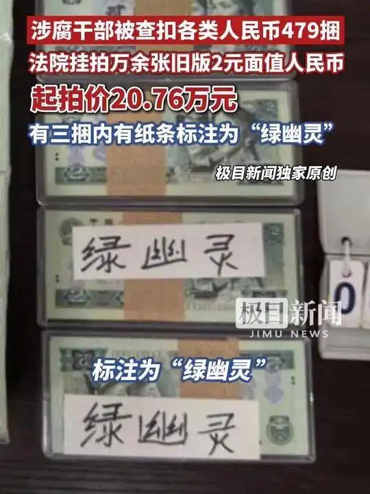 法拍场上惊现“特殊赃物”:万元2元纸币引关注! 你见过上万张2元纸币被法拍吗?近日,浙江温州市永嘉县人民法院在法拍平台挂出“大招”——万余张第四套2元面值人民币被拍卖,起拍价20.76万元,瞬间引发网友热议与围观。 此次拍卖的标的物是105捆、共10500张2元纸币,1990版与1980版各有乾坤。其中,1990版的55捆里,有50捆密封包装,还有三捆内藏“玄机”,纸条标注“绿幽灵”,这可是收藏界的“宠儿”。1980版的50捆也全部密封。 原来,这些纸币是永嘉县人民法院扣押的涉腐干部汤光漫名下赃物。除了这105捆2元纸币,还有100捆2角人民币和3根金条等待法拍。 据悉,第四套人民币自2018年停止流通后,收藏热度不断攀升,“绿幽灵”更是备受追捧。目前,法拍平台上已有千余人围观。2026年1月4日10点,这场特殊的法拍将正式开槌,究竟会花落谁家,又能否拍出高价,让我们拭目以待!