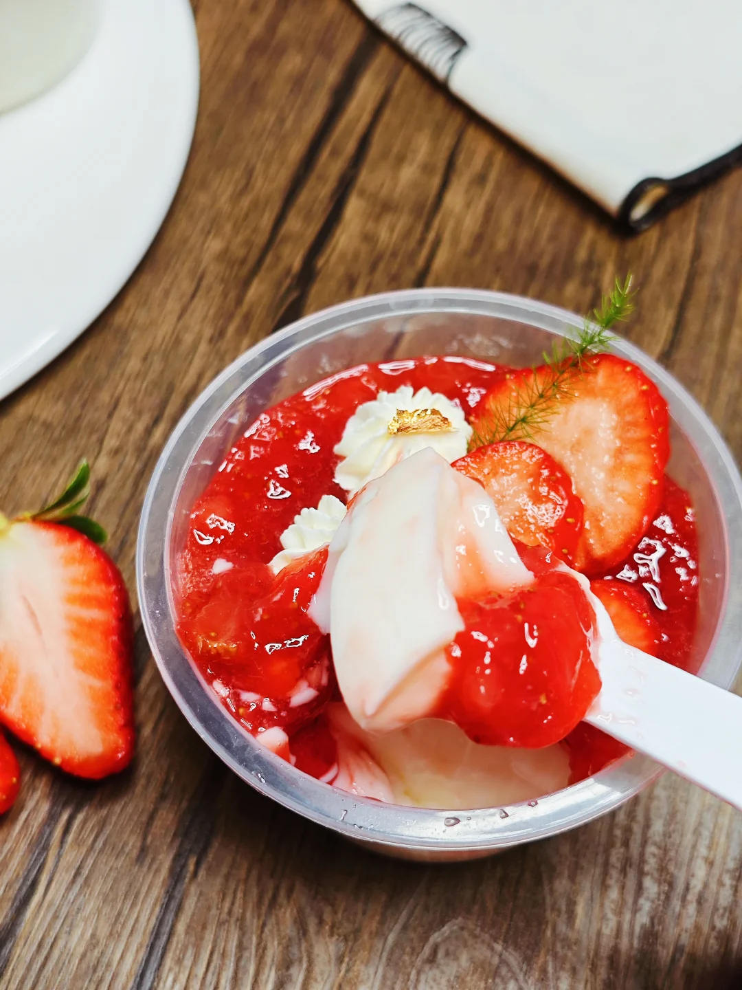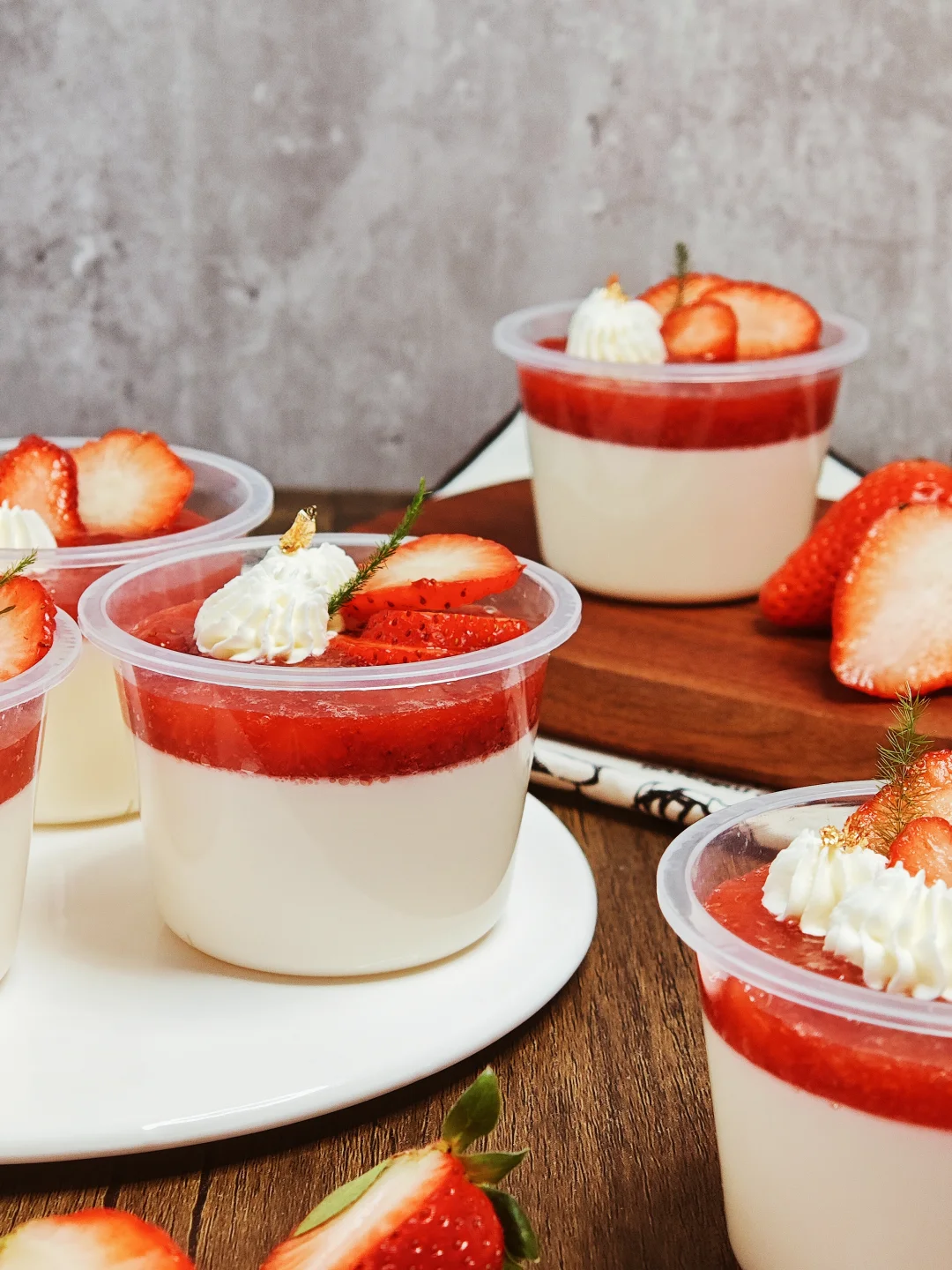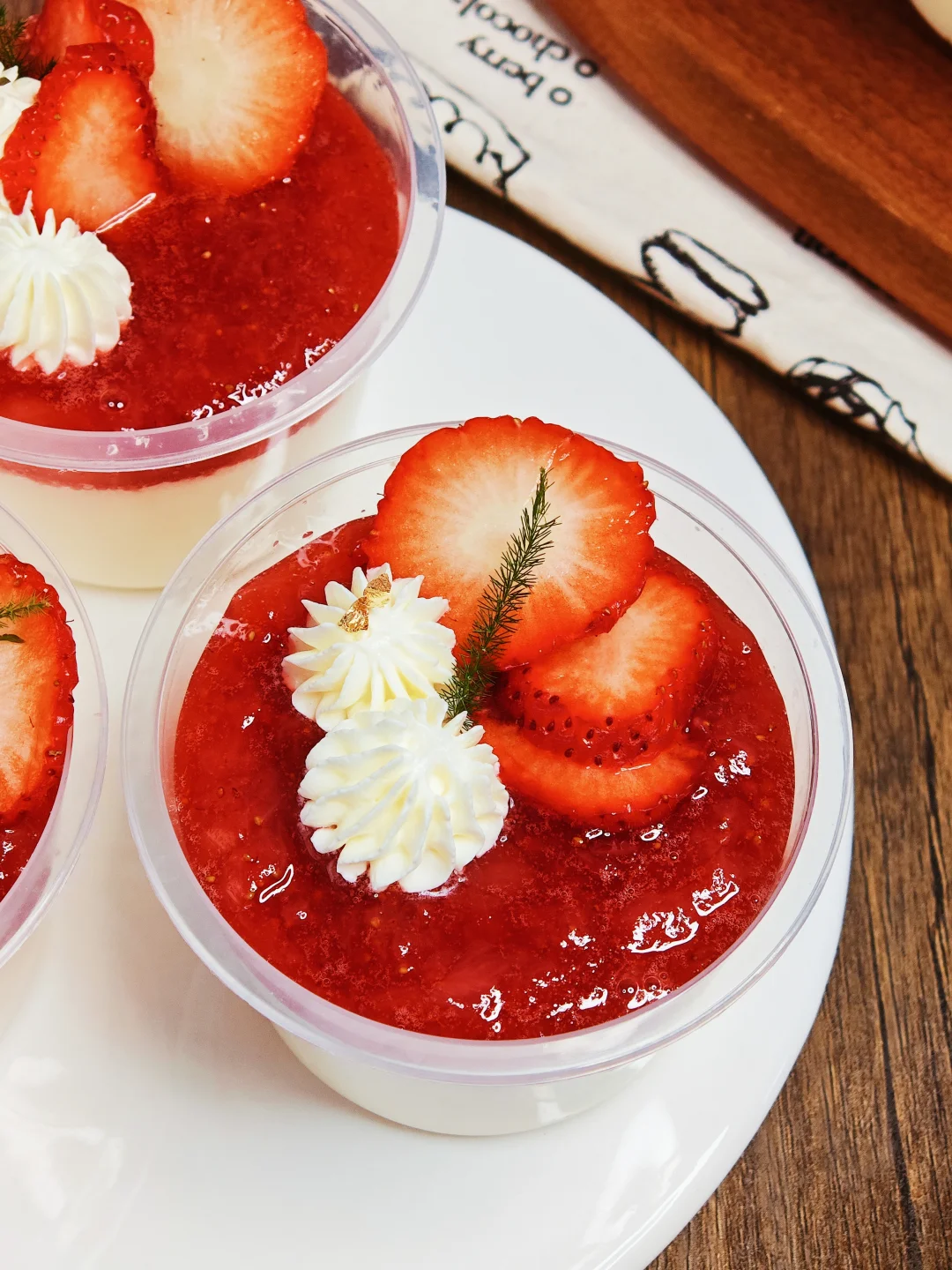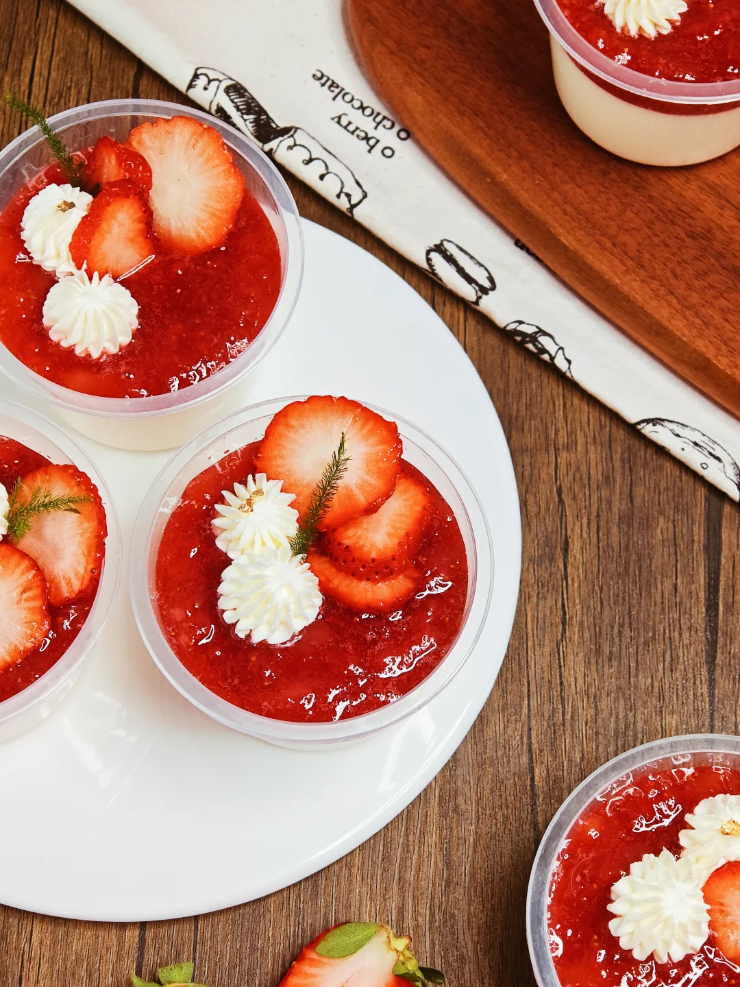 4⃣️放入冷藏好的奶冻杯里,简单装饰一下