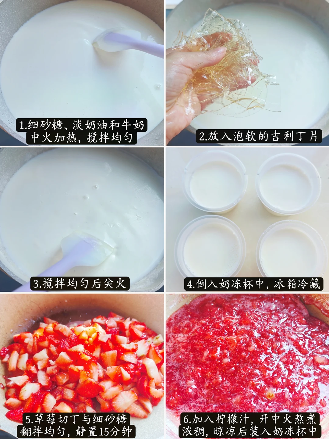 🍓奶冻:牛奶600ml|淡奶油180ml|细砂糖50g|吉利丁片15g
