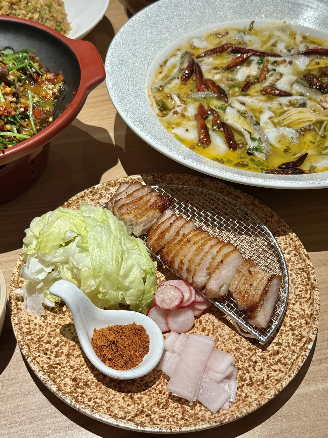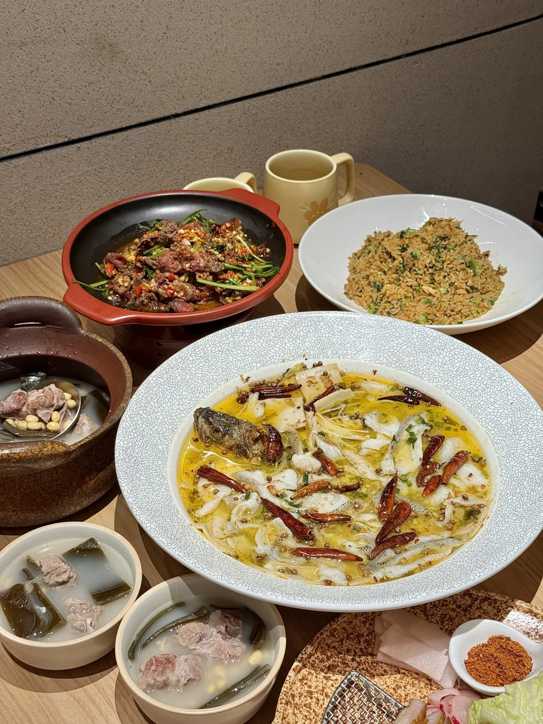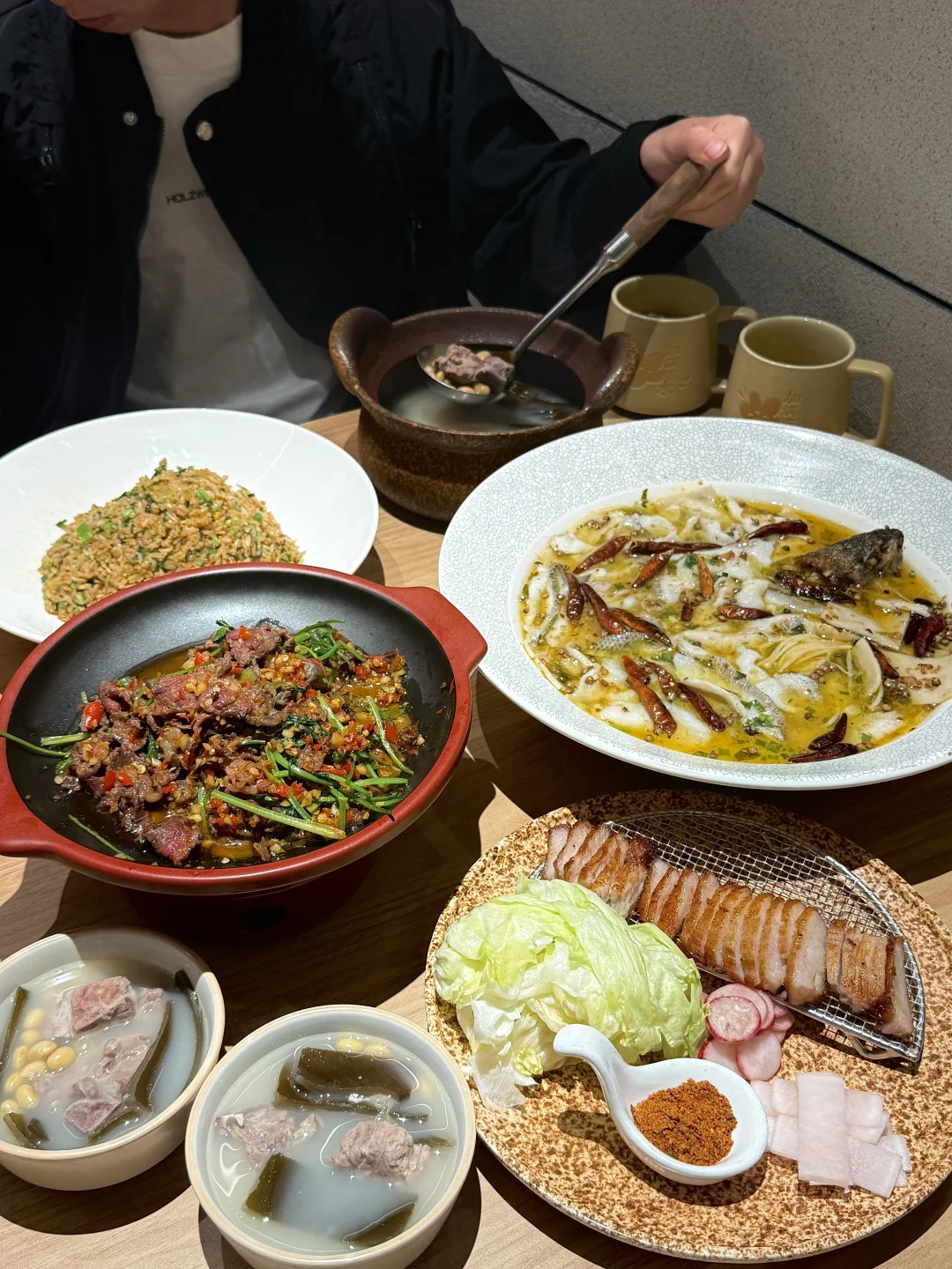 2.0版本的太二也太好吃了吧!! 他家酸菜鱼我就不说了 牛肉和鸡肉做的也如此妙啊 活鱼、鲜鸡、鲜牛都是当天新鲜到店 酸菜鱼用料十足 门口还展示了好多食材 爆炒鲜牛肉酸酸辣辣好入味 牛肉七分熟超级嫩啊🤤 川式猪颈肉口感好爽脆 搭配酸萝卜好解腻! 海带猪骨汤用料好足好好喝👍🏼 还有现炒酸菜炒饭锅气好足好香啊🥹 这还是我认识的太二吗 !! 珠海珠海美食珠海旅行太二大声安利本地美食