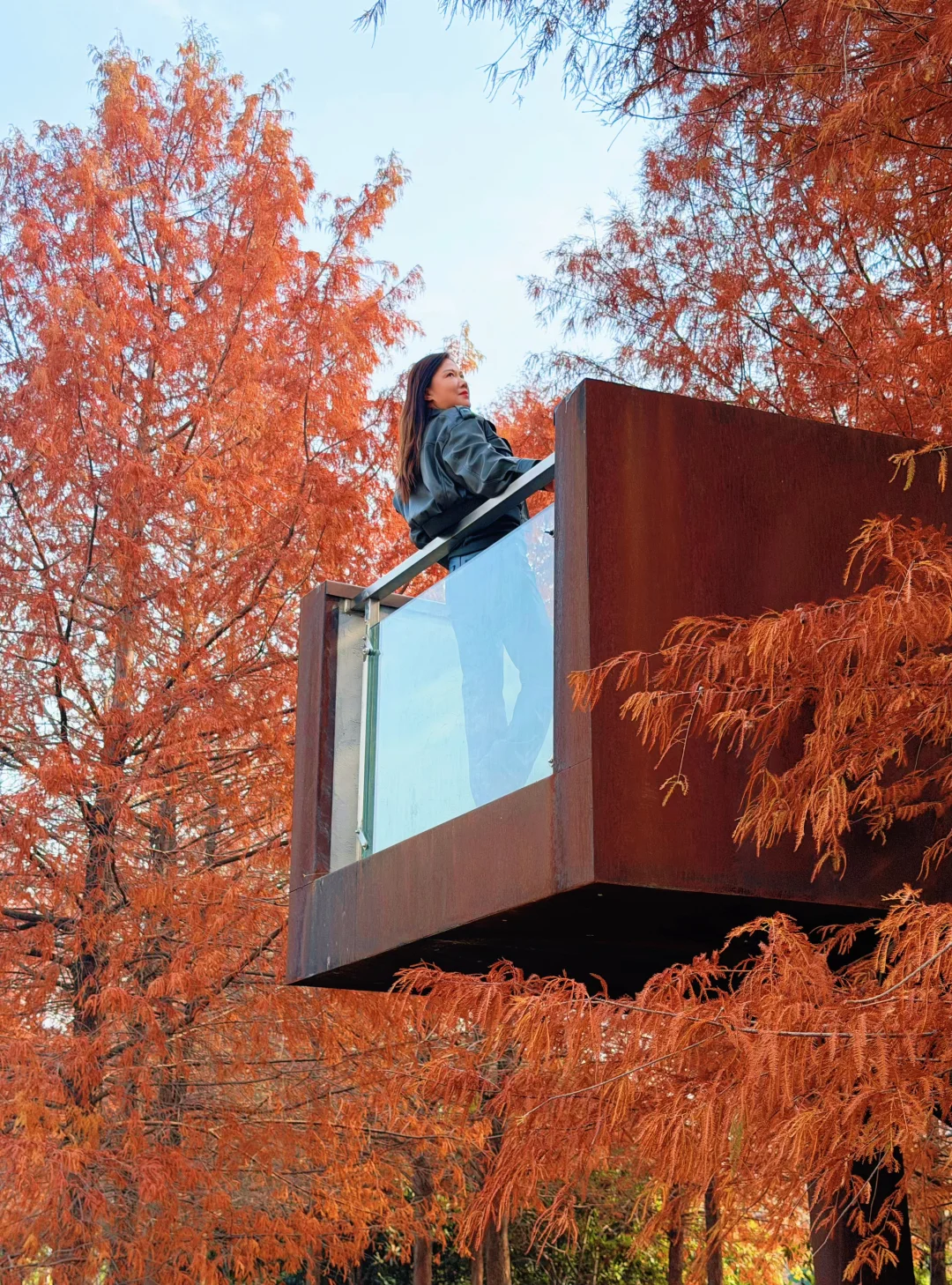 没想到的是小小的观景台竟然这么火,虽然是工作日中午去的,但已经有好多大爷大姨在排队,还有商拍的蹲点,商拍和大姨很耗时间,人均最少十分钟起,排队至少十五分钟,楼梯上都是人,好多机位无法取景。周末要拍照的建议早点去,人相对较少。落羽杉红了 小众旅行地