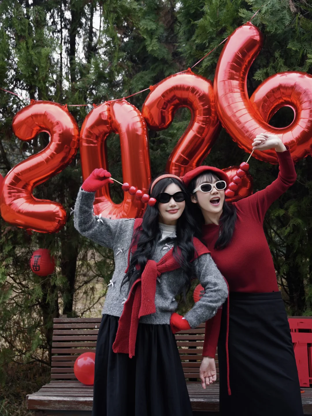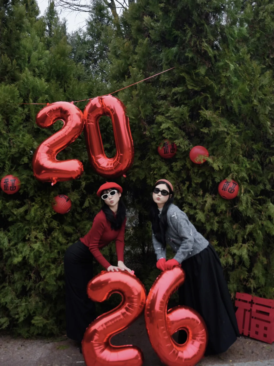✔️新年照一定要有红色元素,红手套 红帽子 红围巾 利用起来