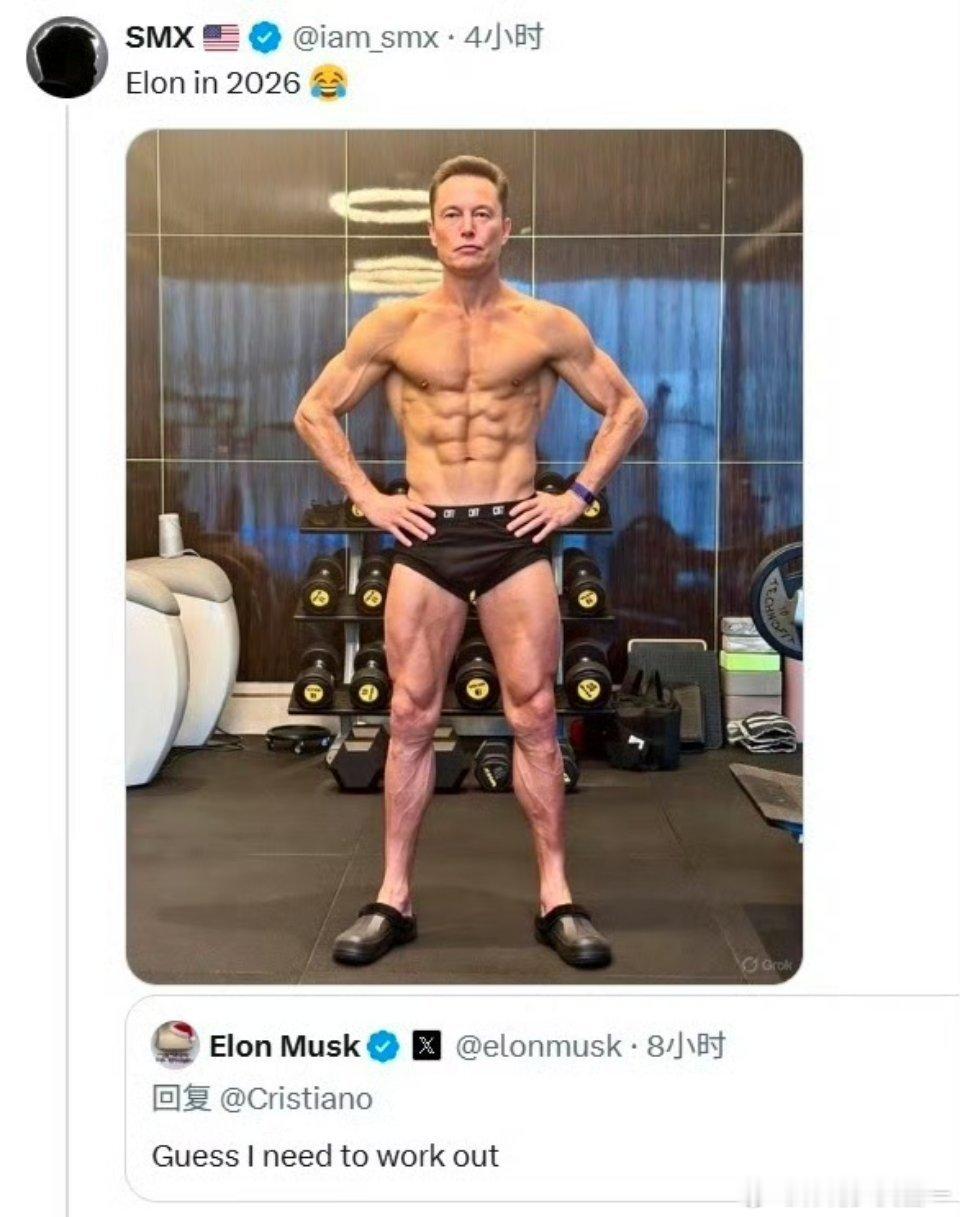 马斯克被C罗身材卷到了这两人身材几乎一样,不是用ai换了个头吧