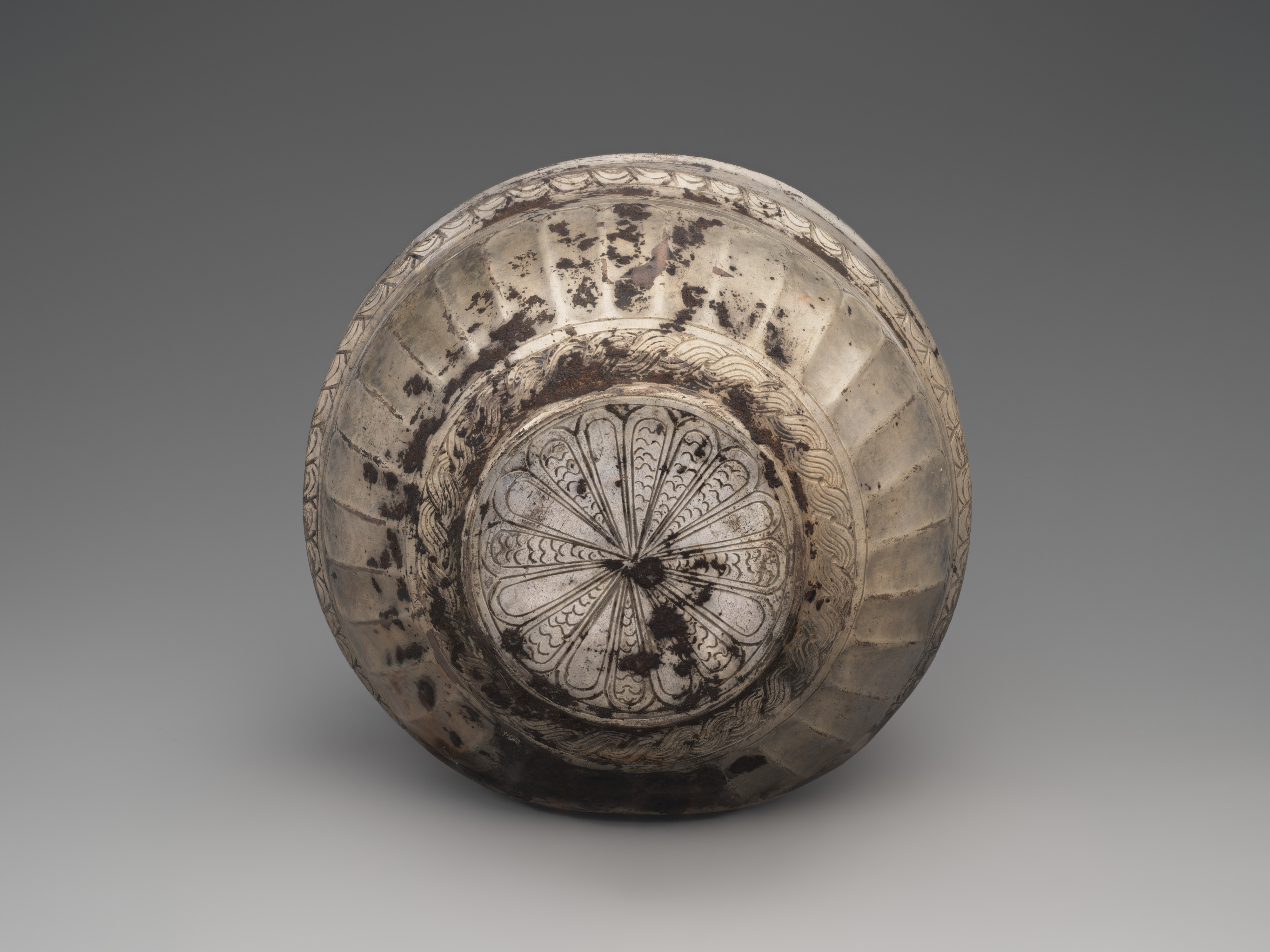 纽约大都会博物馆藏公元前1000年以前伊朗地区制作的铜鎏银绳纹花纹碗