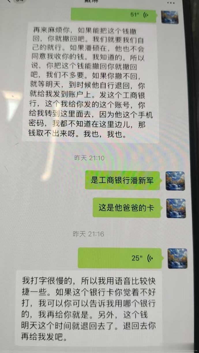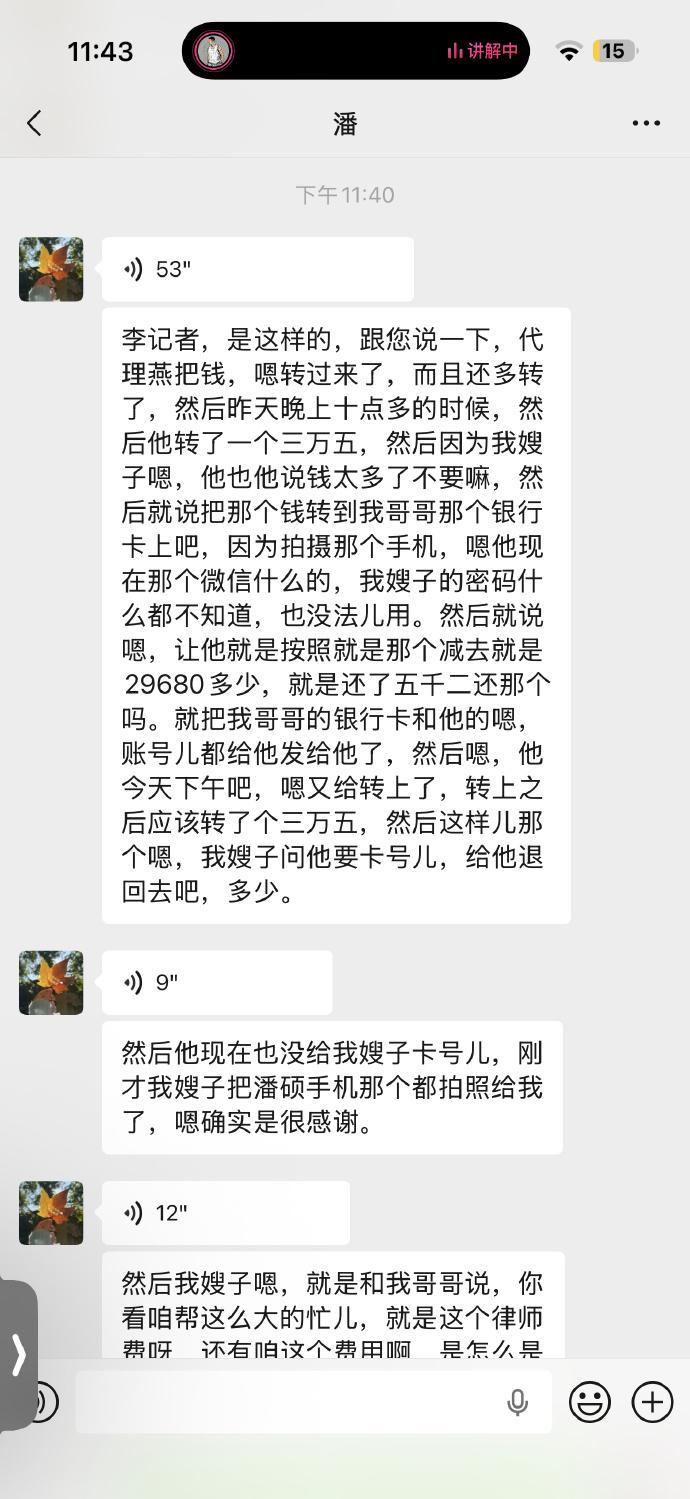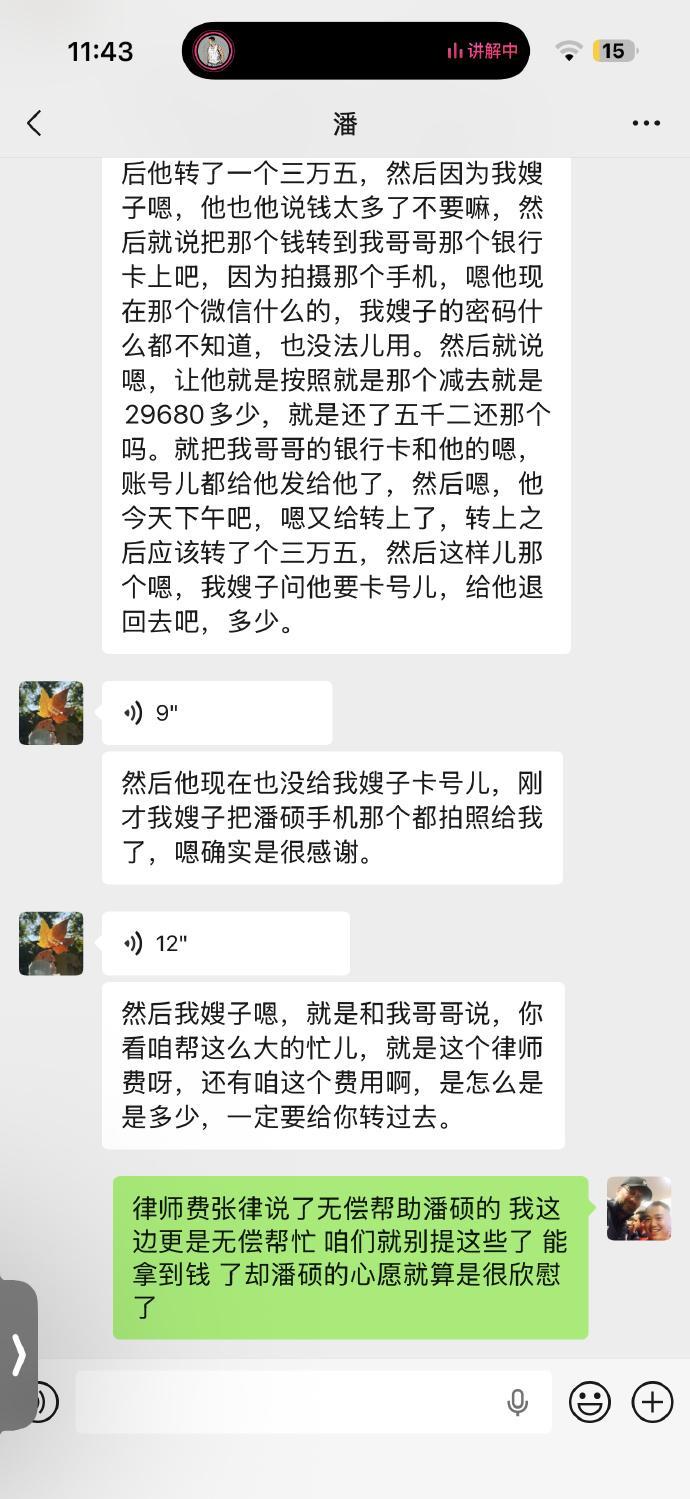潘硕家人发来信息,戴琳已把欠款于今日还清,而且还有多给5000多,潘妈妈不愿多收,表示想要退回,不过戴琳也没有答应还是转了35000,这一点还是要客观的通报给大家的,相信潘硕在天之灵也会欣慰的…潘硕家人也委托我在微博上向所有关心他们的球迷朋友表达感谢!这件事总算了结,也希望潘硕可以安息!